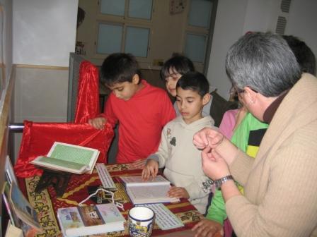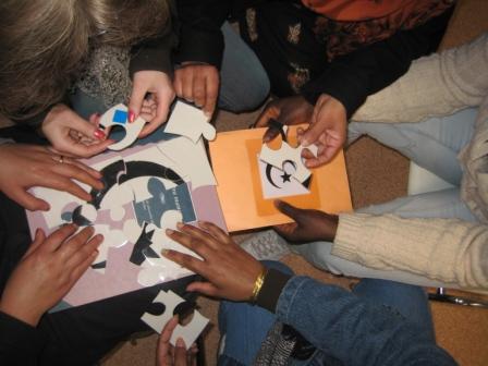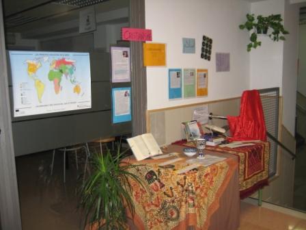 Les alumnes de castellà van col·laborar a portar objectes de les diferents religions pera l’exposició, buscar personatges de cada religió que hagin estat instruments de pau, i van treballar el DENIP durant tres dies que van acabar amb un moment comunitari interreligiós on vam llegir lectures dels diferents llibres entorn dels 4 elements naturals: foc, terra, aigua i aire.