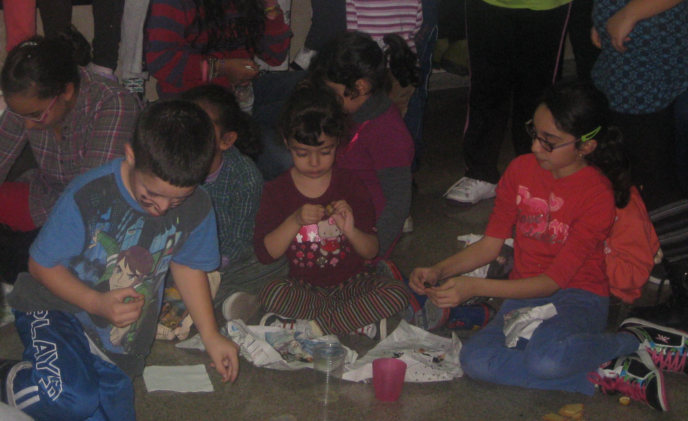 Algunes famílies van participar fent les paperines, tallant i fent les castanyes abans de què comencés la festa.