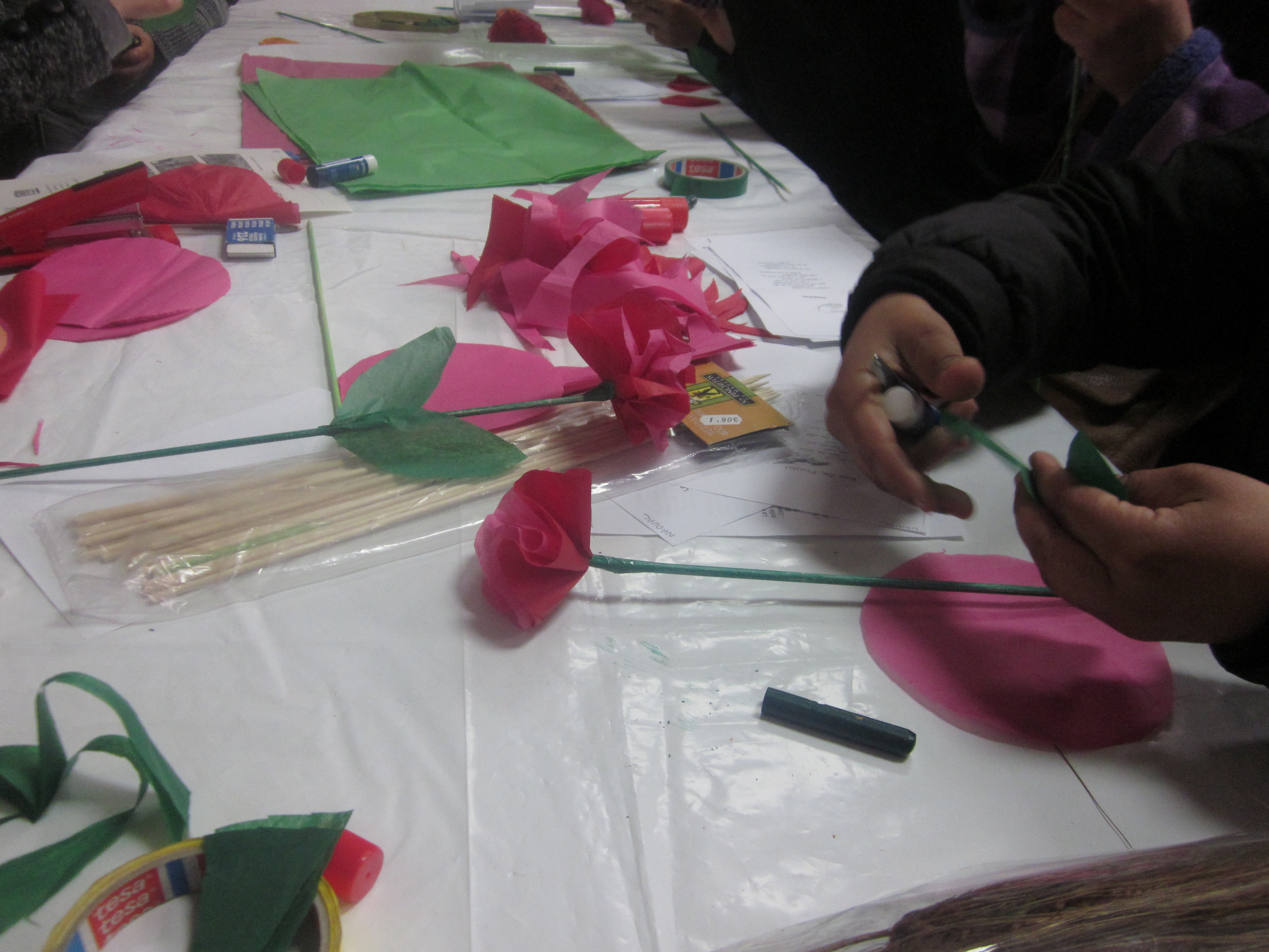 Aquest any, vam fer un taller de roses de paper, amb espiga i plàstic, de manera que ens va quedar força semblant a les originals! Com sempre, les dones van superar amb escreix la creació de les educadores… i van sortir unes roses meravelloses, fetes amb delicadesa i amb molt de detall. En saben molt!