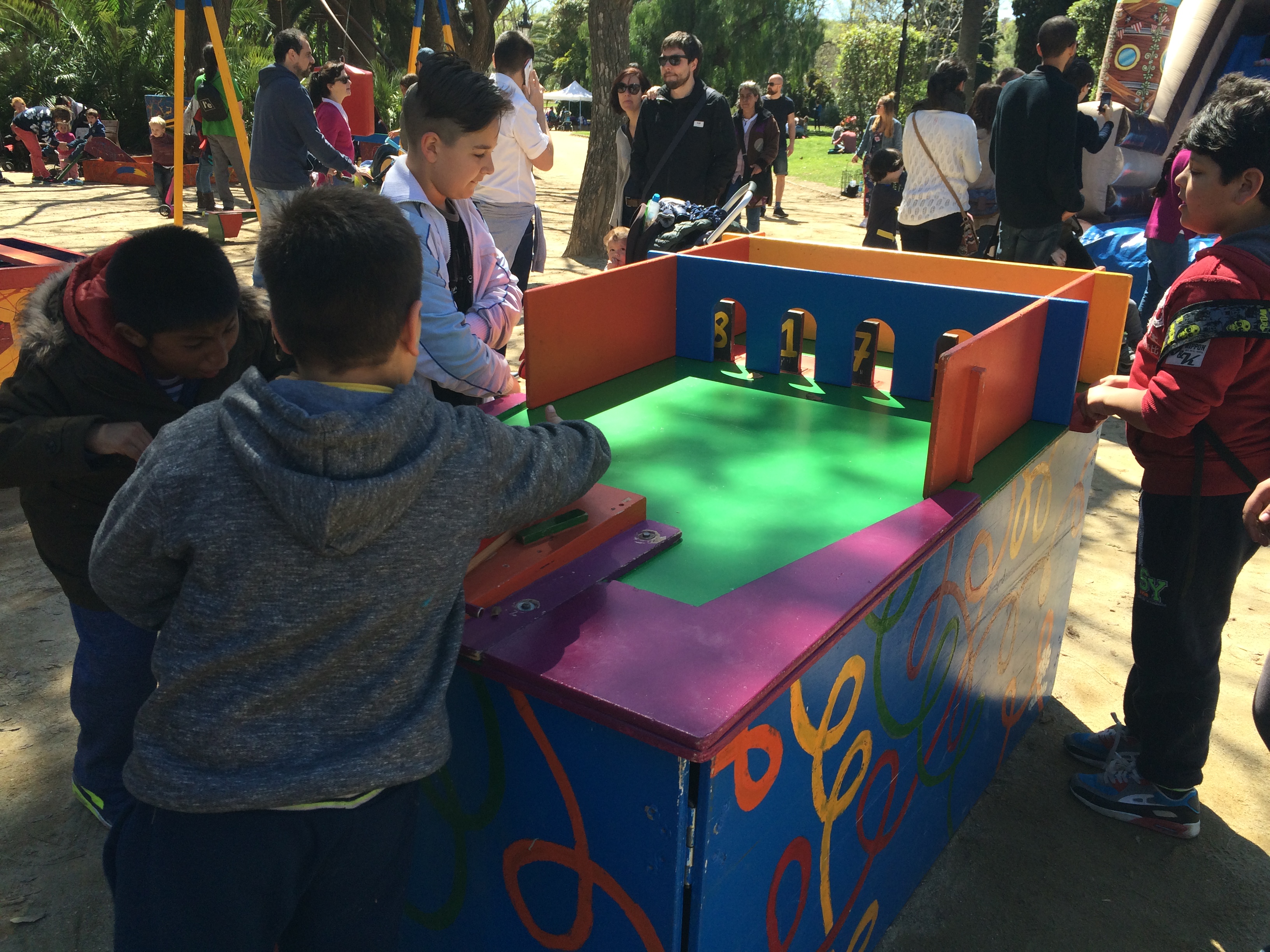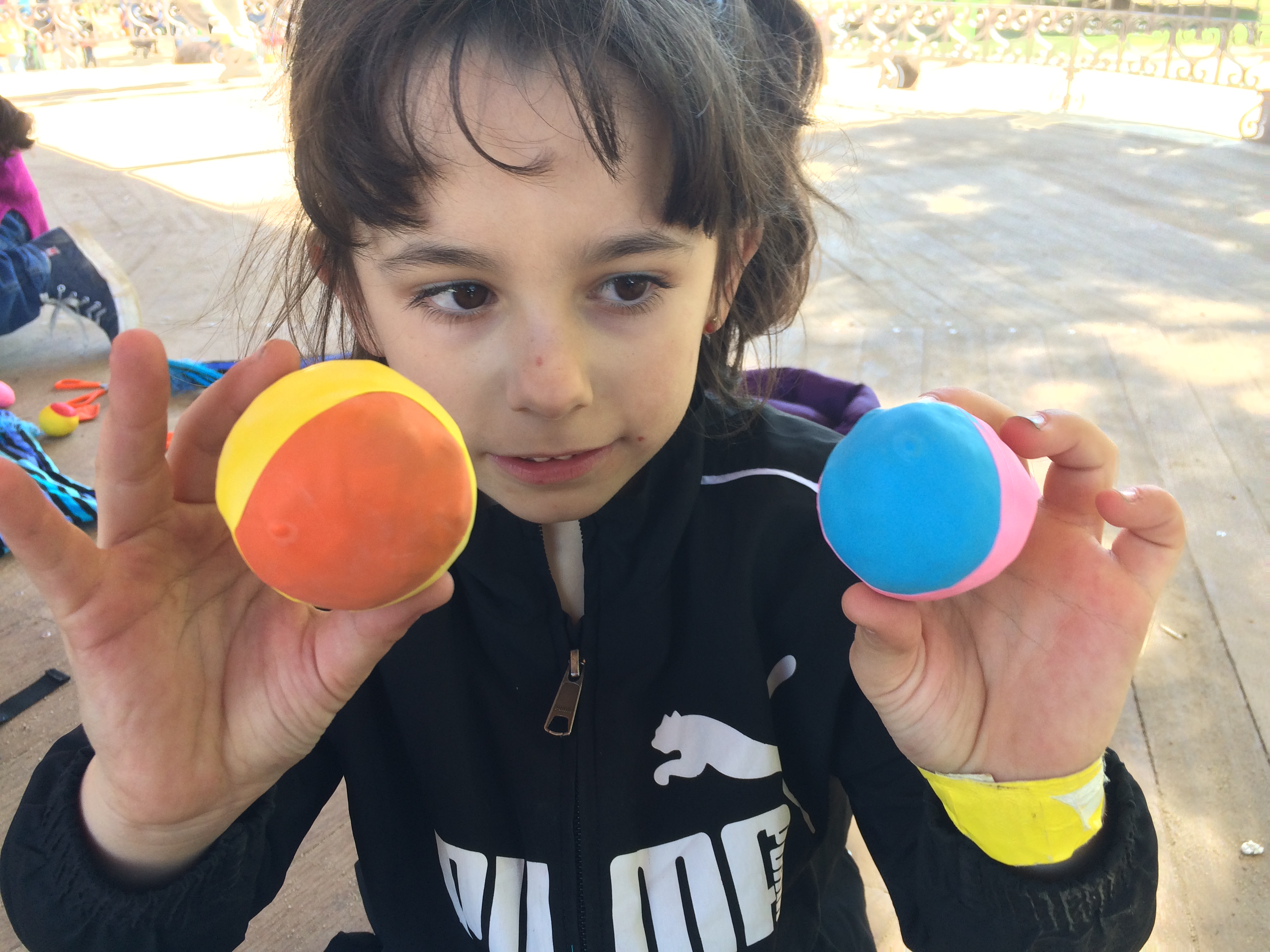A mi el que més em va agradar va ser saltar als llits elàstics” diu la nena de pèl esvalotat davant la sorpresa dels seus companys, i és que mai saps què et pots trobar al parc de la Ciutadella! Nosaltres, en arribar, ens vam trobar amb una infinitat de jocs de fusta de mides grans on la concentració era el teu gran amic. “Jo quan vaig arribar a casa vaig jugar amb els meus germans amb les pilotes malabars” i tot seguit cada un d’ells va explicar quantes i com havien fet aquells malabars disposats a aprendre a mantenir l’equilibri o, si més no, a intentar-ho.