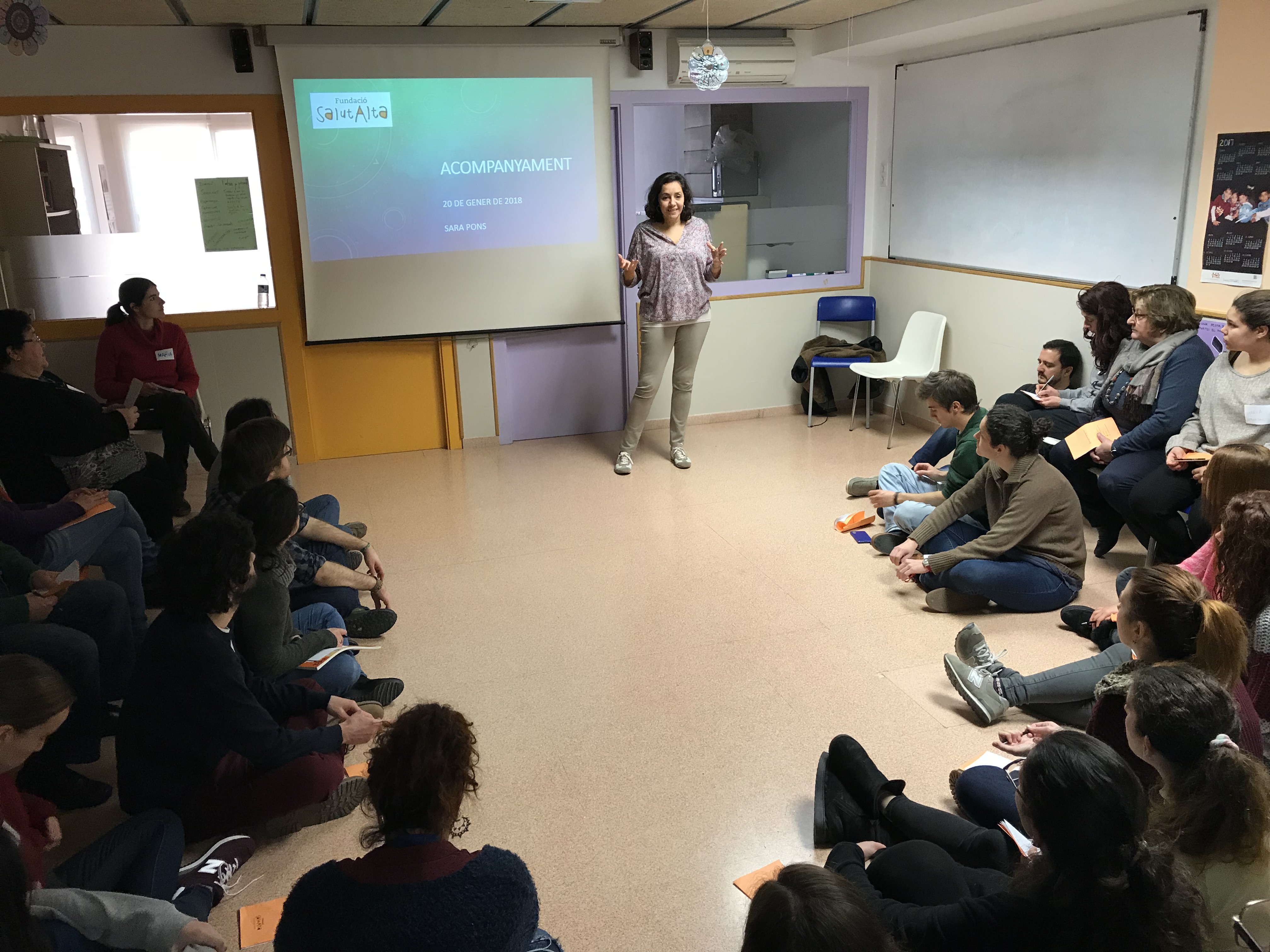Així doncs, poc abans de les 10h del matí la Fundació obria les portes per acollir les més de 40 persones que s’havien inscrit per participar a la IX Jornada de voluntariat de l’entitat. La primera part del matí la vam dedicar a dinàmiques de presentació per compartir gustos i interessos dels companys amb qui compartim projecte i descobrir quines són les emocions que ens genera fer aquest servei al barri. Després d’un bon esmorzar, vam iniciar un espai formatiu al voltant del concepte de l’acompanyament, dinamitzat per la Sara Pons, professional d’acompanyament emocional i espiritual laic a persones malaltes, familiars i professionals sanitaris.