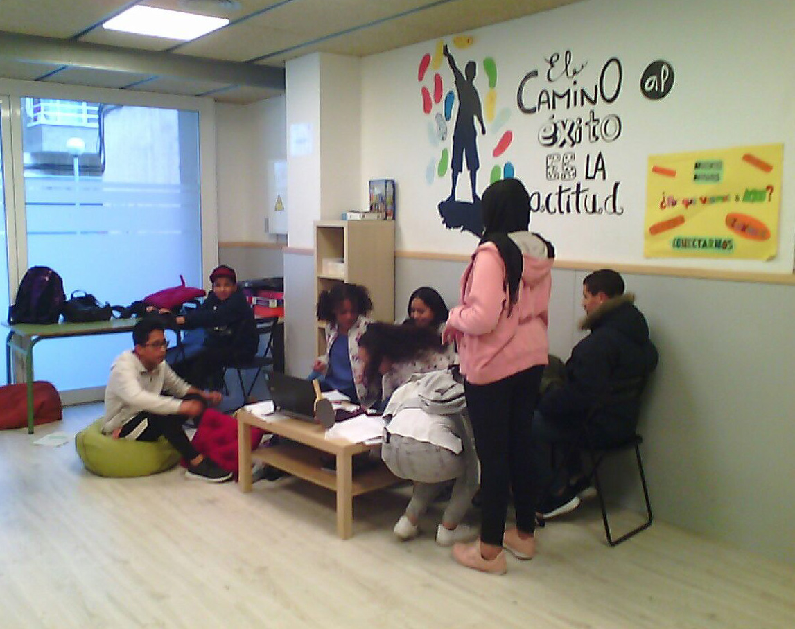 Els joves van arribar puntuals i, quan entraven, es trobaven amb la sorpresa de que les educadores no hi eren. També van demanar sortir a jugar al pati però es va haver d’explicar que al ser només dos referents no es podien obrir més espais del local. Després d’un inici del dia en el qual es va treballar el per què de la Vaga i l’absència de les educadores, es va iniciar un Espai d’Aprenentatge d’allò més curiós. La sala d’acollida es va convertir en la sala d’aprenentatge, amb un mobiliari totalment diferent i una atenció menys individualitzada de l’habitual.