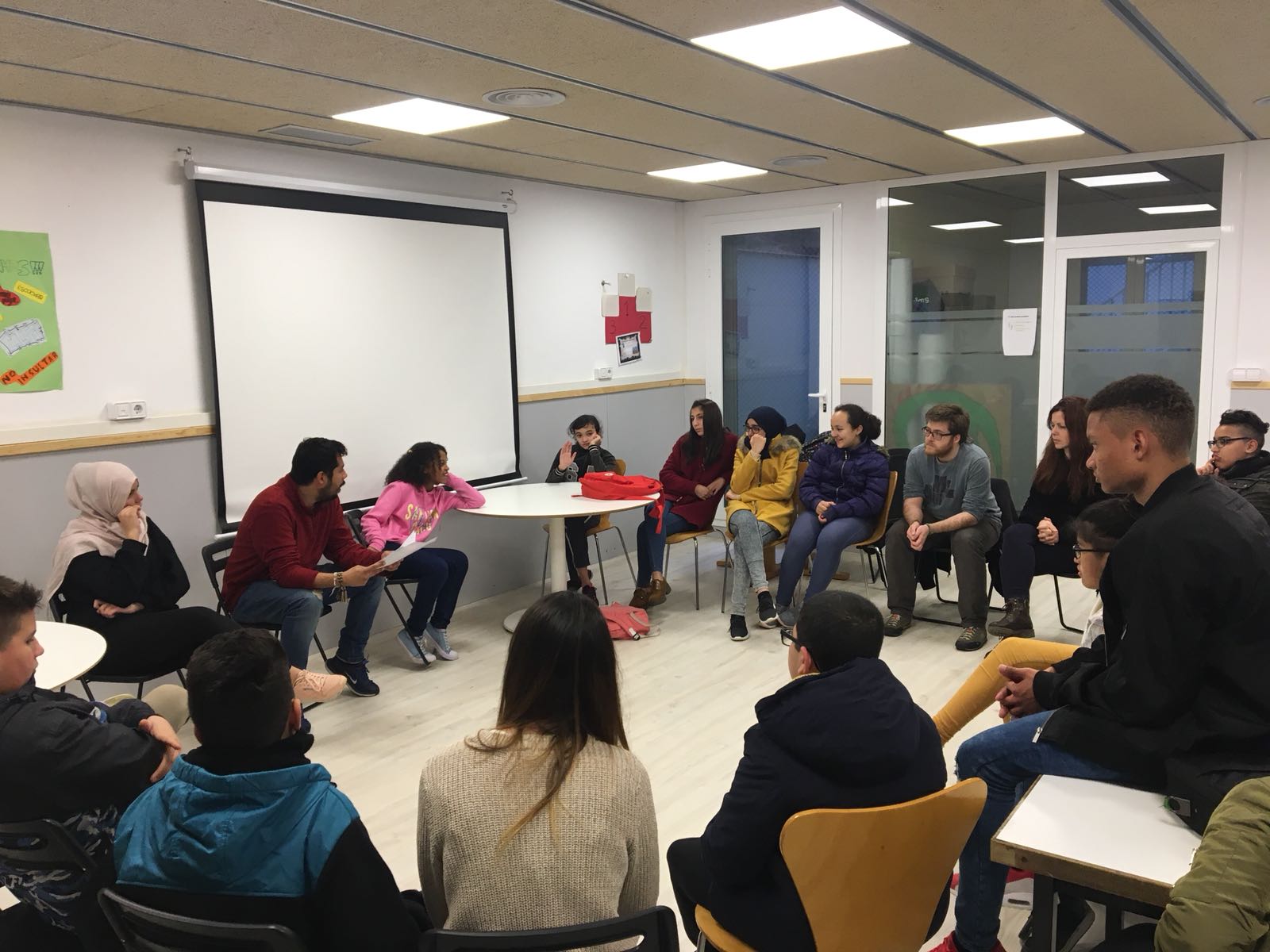 Nosaltres de moment estem en una fase prèvia però per tenir una idea del resultat final, fa unes setmanes vam ser convidats a una mostra de curtmetratges que La Bretxa feia amb altres grups semblants al nostre. Tots aquests curts tenien en comú el fet de centrar la temàtica en el treball de Drets Humans i la denúncia de la seva vulneració que alguns col·lectius en són víctimes. Va ser una tarda molt entretinguda i vam acabar amb un exquisit pica pica del qual els nostres joves van poder tastar diferents aperitius i postres!