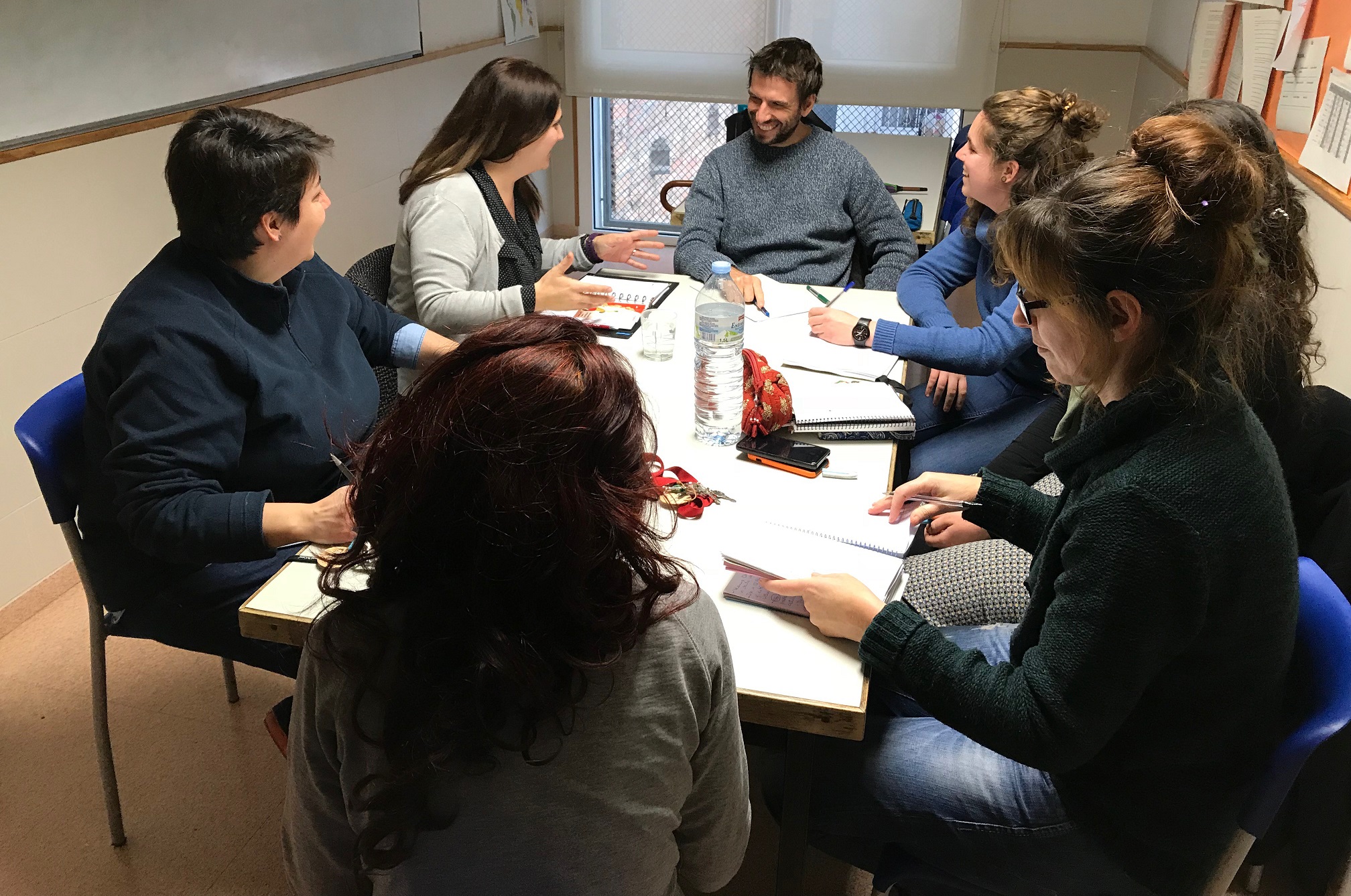 Jo vinc cada mes i mig i cada cop em reuneixo amb un equip diferent però hi ha uns professionals que són fixos. Hi són sempre la coordinadora de projectes, la referent de famílies, per donar aquesta visió més àmplia de la família que crec que és molt important perquè ofereix un nexe d’unió, i algun cop també s’ha sumat el psicòleg de la Fundació.