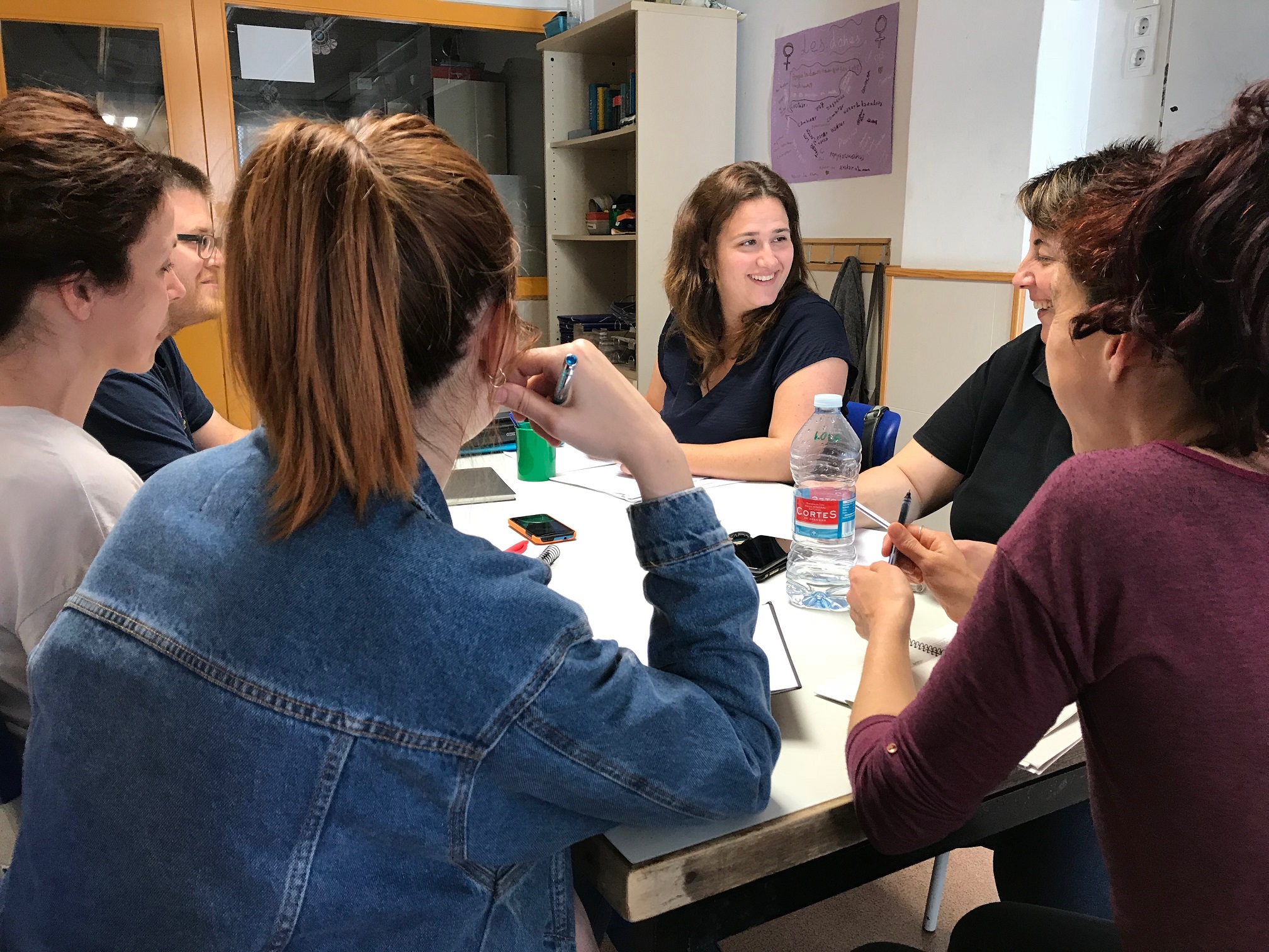 Justament quan vaig acabar els estudis de treball social vaig estar durant molt de temps treballant en l’àmbit de salut mental, primer a Sant Joan de Déu i després en una fundació tutelar, i va ser una experiència magnífica. La salut mental la tenim molt estigmatitzada i estar tan a prop de la gent i les seves famílies va ser molt xulo. Llavors tenia ganes de continuar estudiant i va ser quan vaig decidir començar a estudiar psicologia. Més tard, va sortir una plaça per treballar a Càritas i em va semblar una molt bona oportunitat! Durant els primers anys vaig estar en diferents departaments i territoris (amb temes de La Caixa Proinfància, com a treballadora social al despatx de Badalona, com a tècnica al departament de voluntariat) i, mentre el temps anava passant i em passejava pels diferents espais de la casa, vaig acabar la carrera. Just aleshores va sortir una plaça on buscaven una assessora psicopedagògica al programa de família i infància i, des d’aleshores, ja fa tres anys que, juntament amb la resta de l’equip, fem les supervisions.