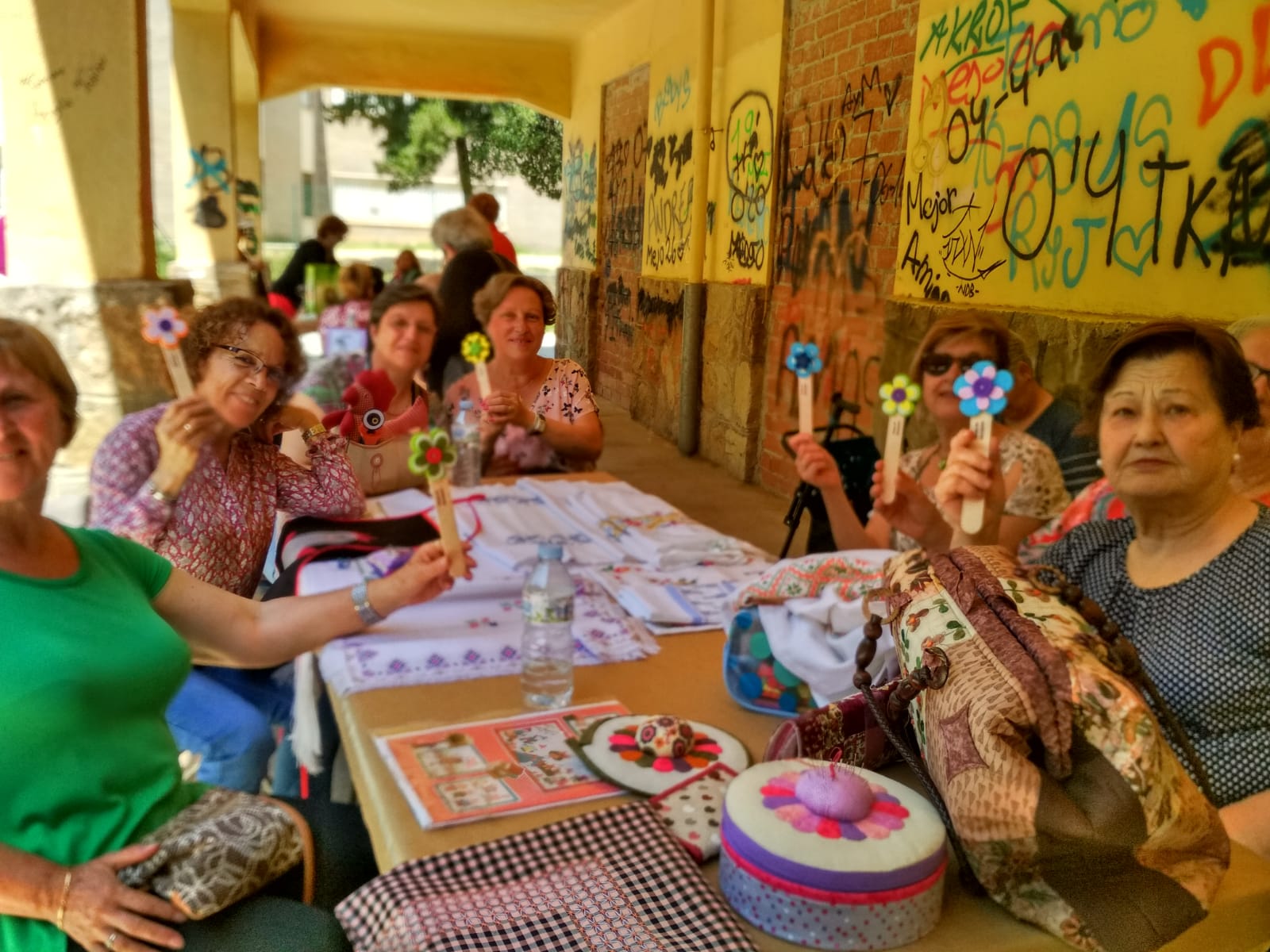 Amelia: Fem manualitats de brodats de tota mena que l'organitza la Sagrario de manera voluntària. Lagartera, punt de creu, patchwork, boixets... Hem fet molts tipus de manualitats en tot aquest temps! A més, oferim reiki amb una monitora externa.