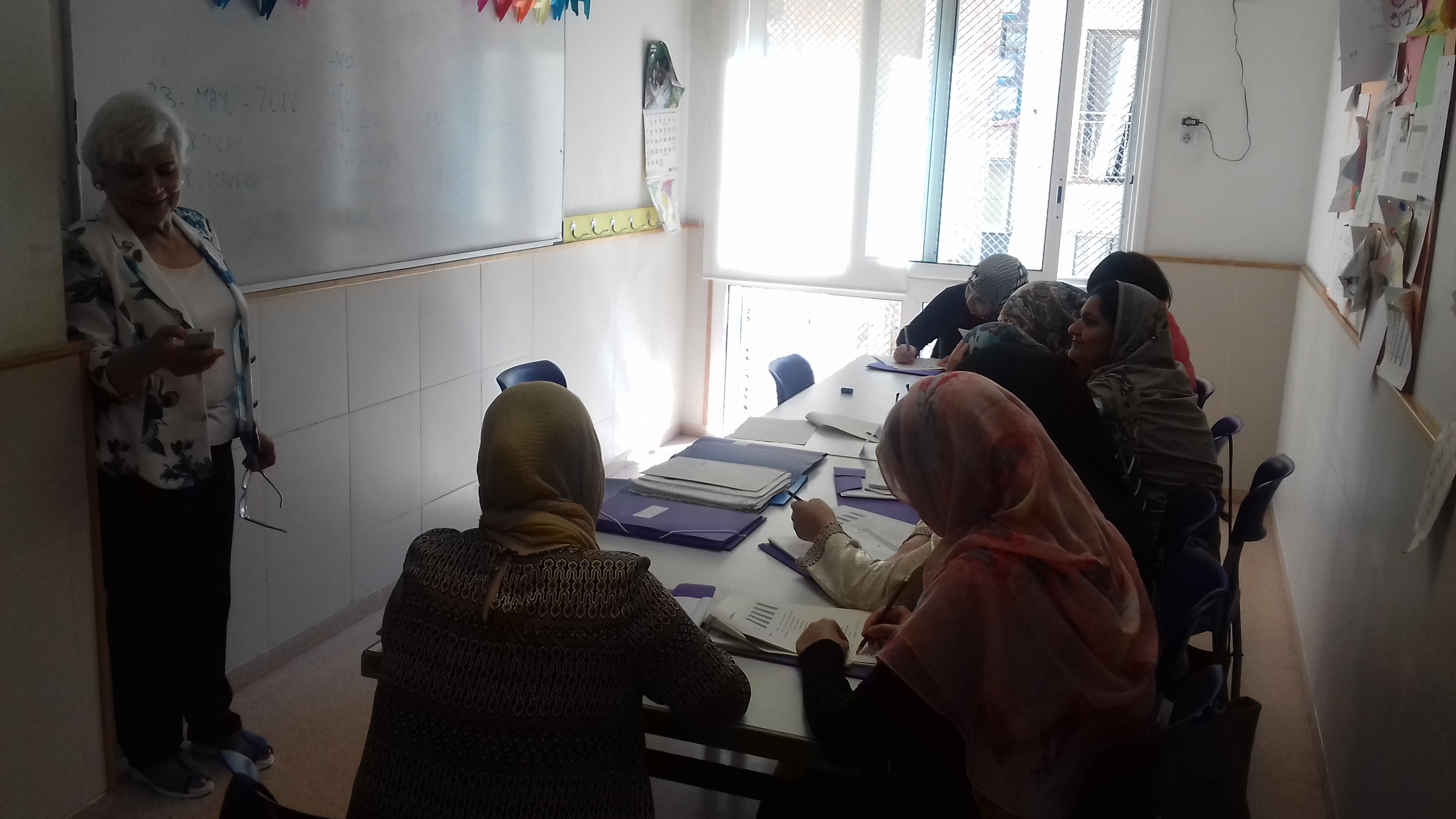 Jo aquí faig classes de castellà, sigui del nivell que sigui, amb un grup d'entre 10 i 12 dones. Aquest any estic amb el grup de nivell inicial, que vol dir dones que tenen algun coneixement, és el curs que aniria després del bàsic, el d’alfabetització.