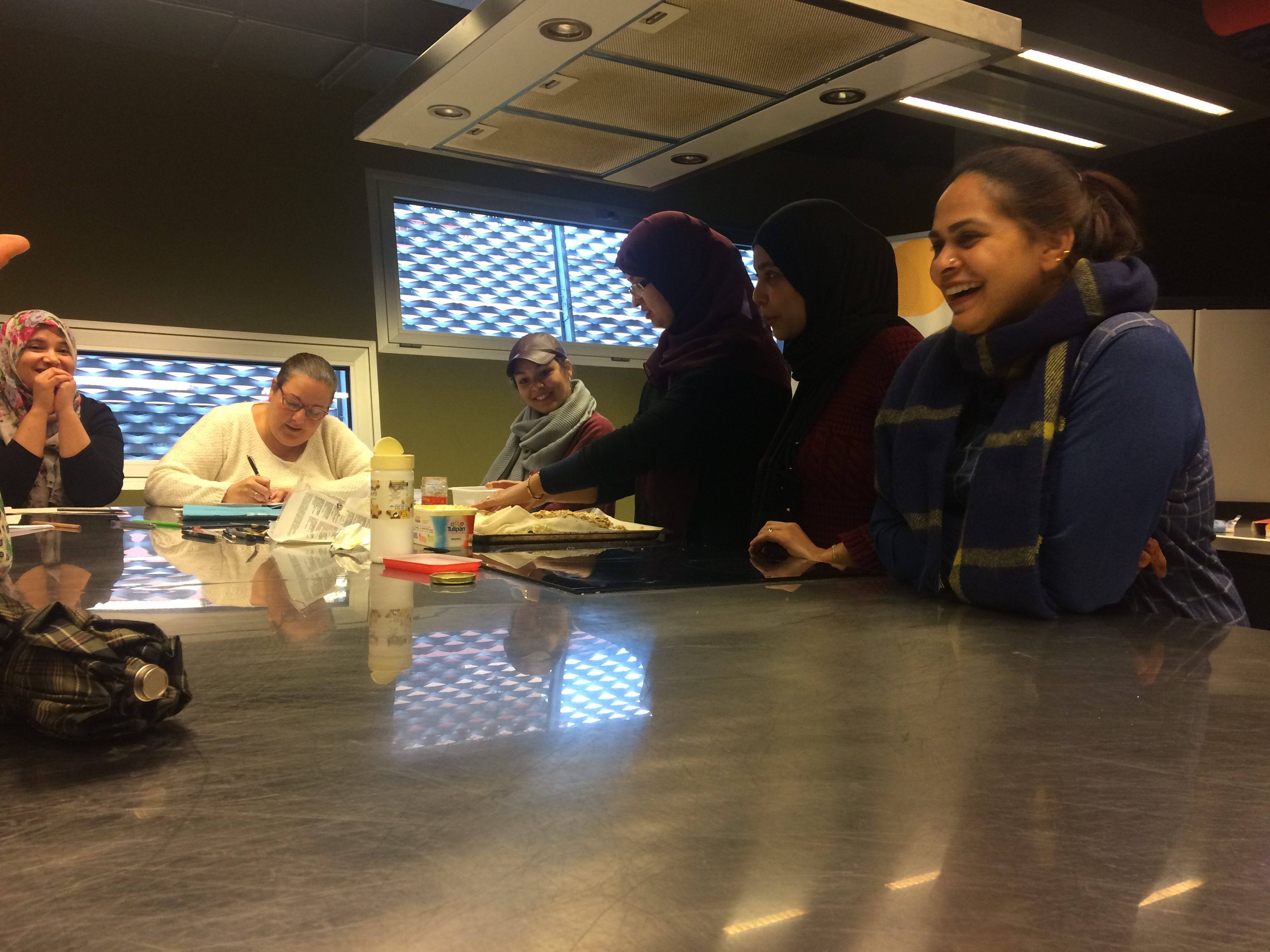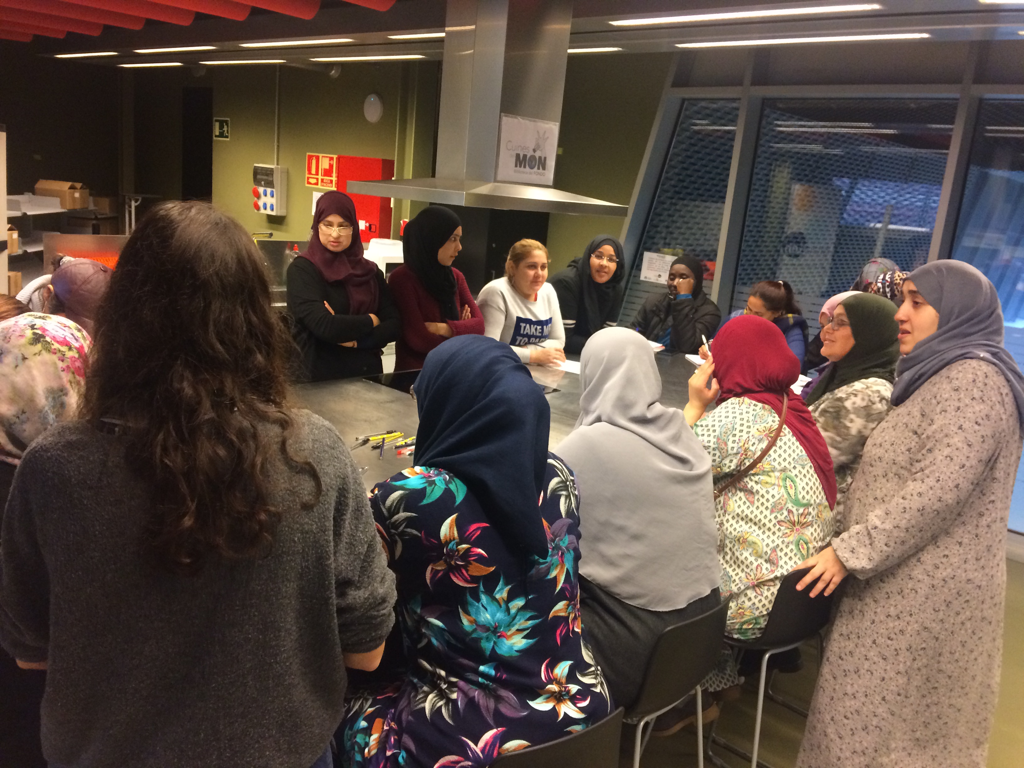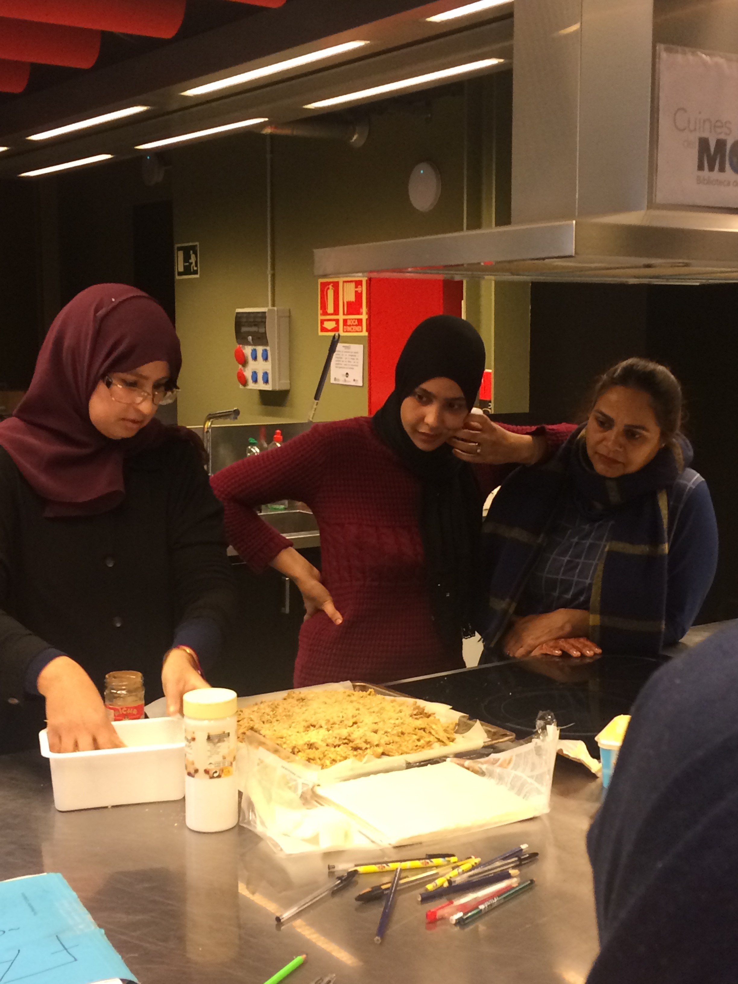 Avui els protagonistes han estat quatre dones marroquines. Al llarg de la setmana s’han organitzat: qui porta els ingredients, qui explica què i quan. Ens hem assegut totes al voltant de la taula, hem tret les llibretes i, avui hem escoltat una de les moltes riqueses gastronòmiques de la cultura marroquí: la pastel·la.