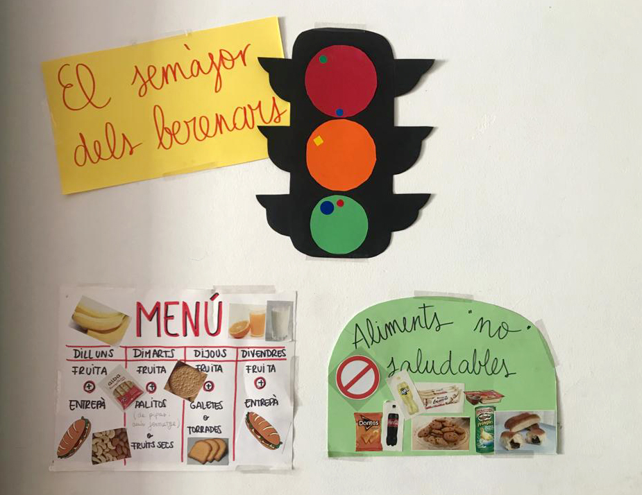 A més, cada grup hem creat el nostre semàfor dels berenars i cada tarda quan arribem a la Fundació, pensem en quin color ens hem de col·locar depenent de com de saludable ha estat el nostre berenar.