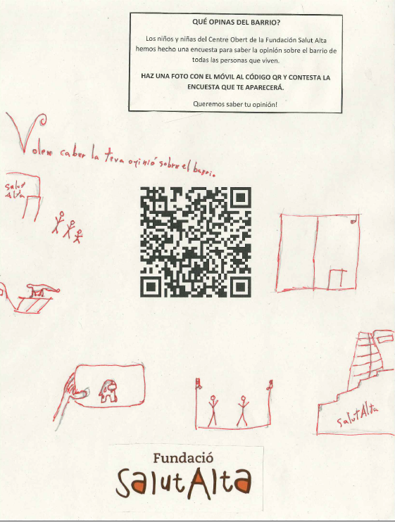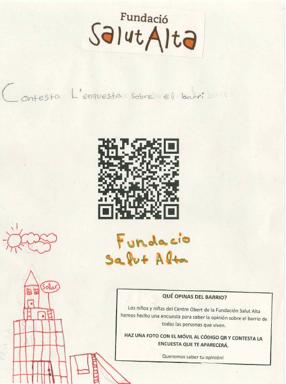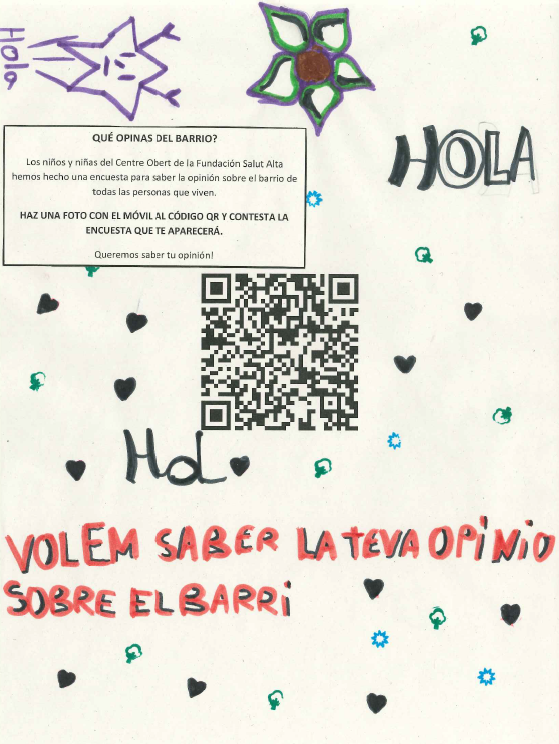 Per l'altra, els més grans, el grup de Roures, a més de conèixer el barri hem volgut saber l'opinió que tenen els nostres veïns i veïnes sobre aquest. Per això, hem realitzat una enquesta online per saber què en pensa la gent del barri on viu, junt amb una campanya de comunicació creant cartells i missatges per promocionar-la. Per cert! Si sou del barri i encara no l'heu feta, la podeu contestar fent clic aquí.