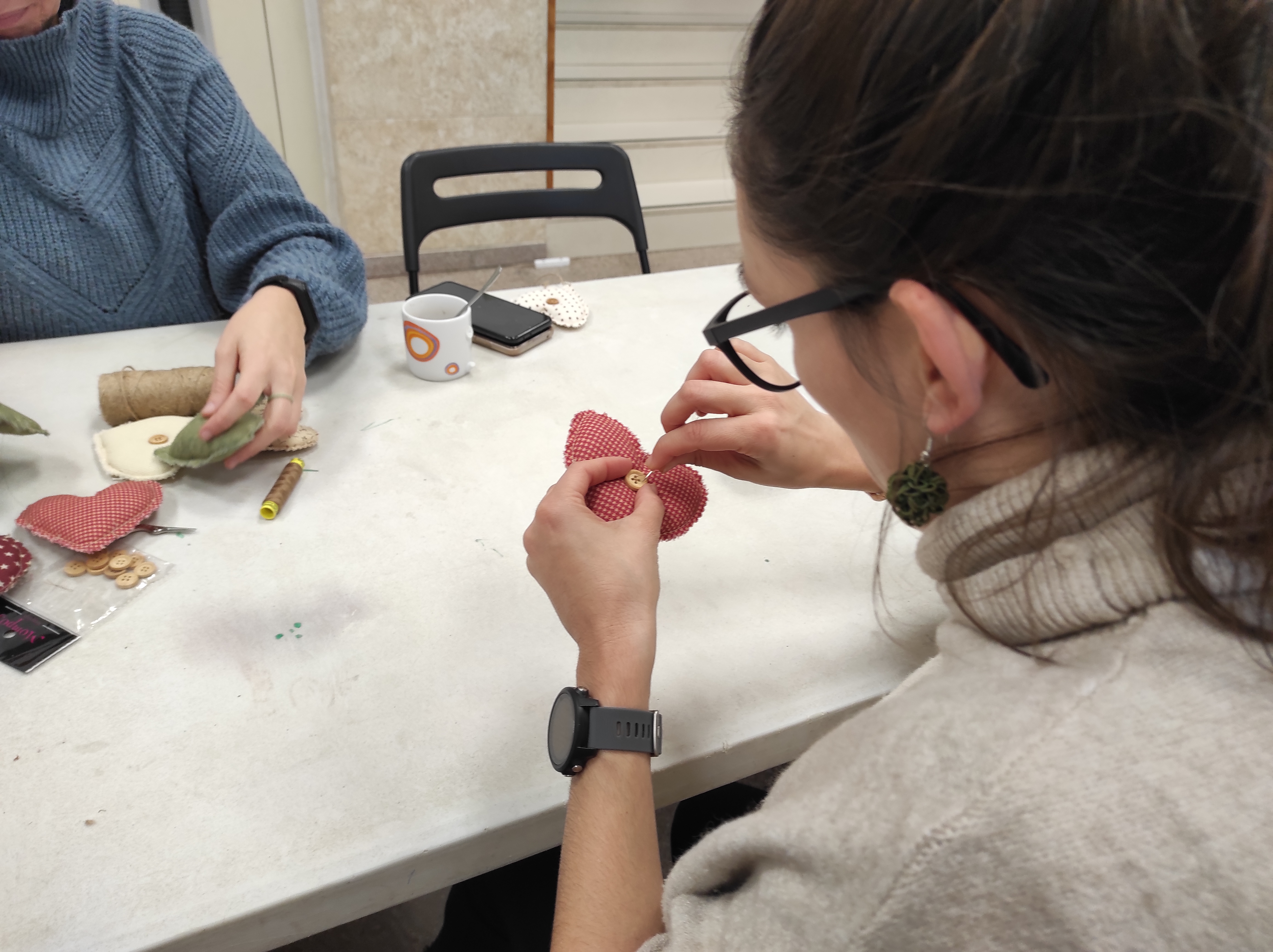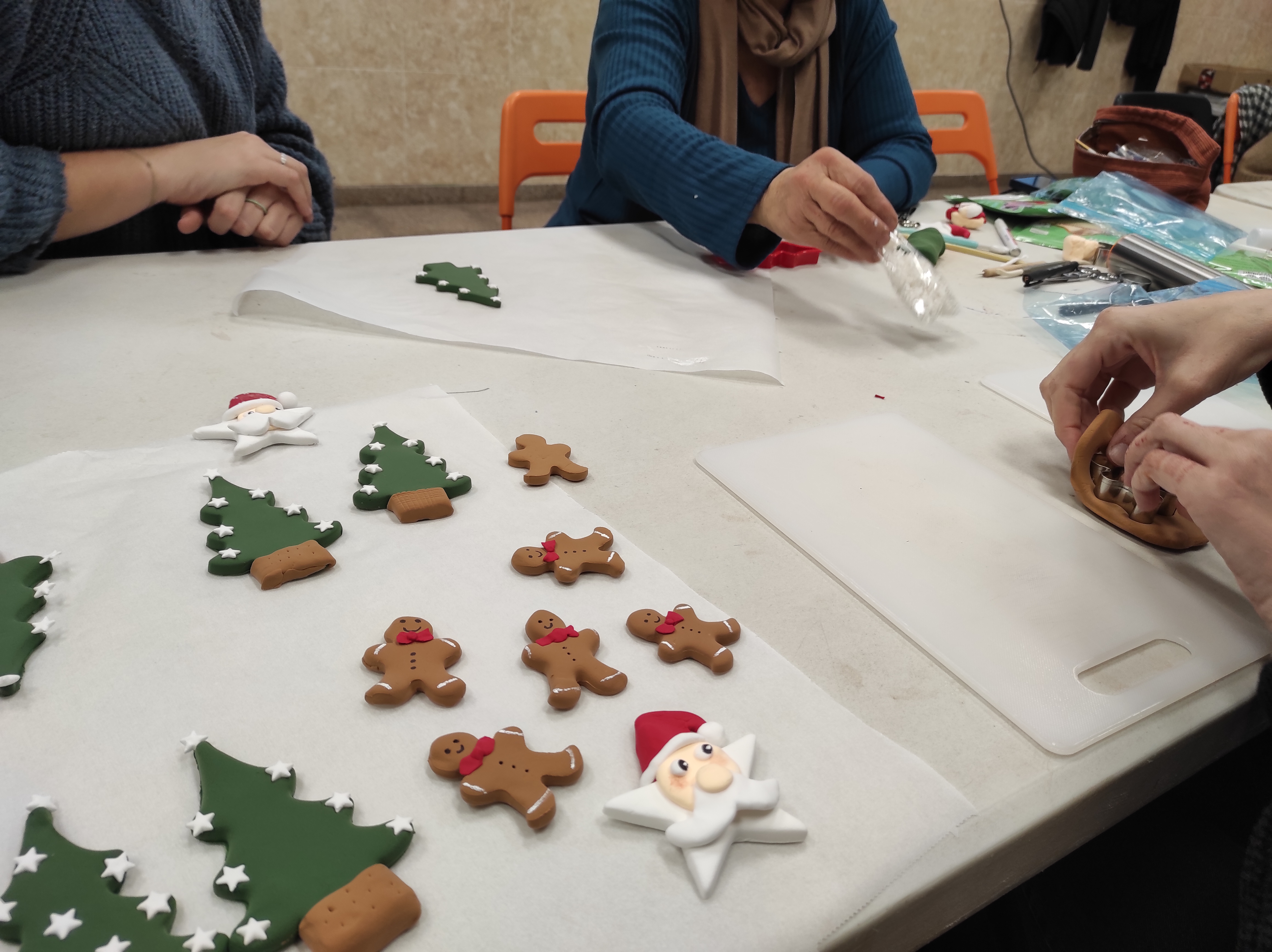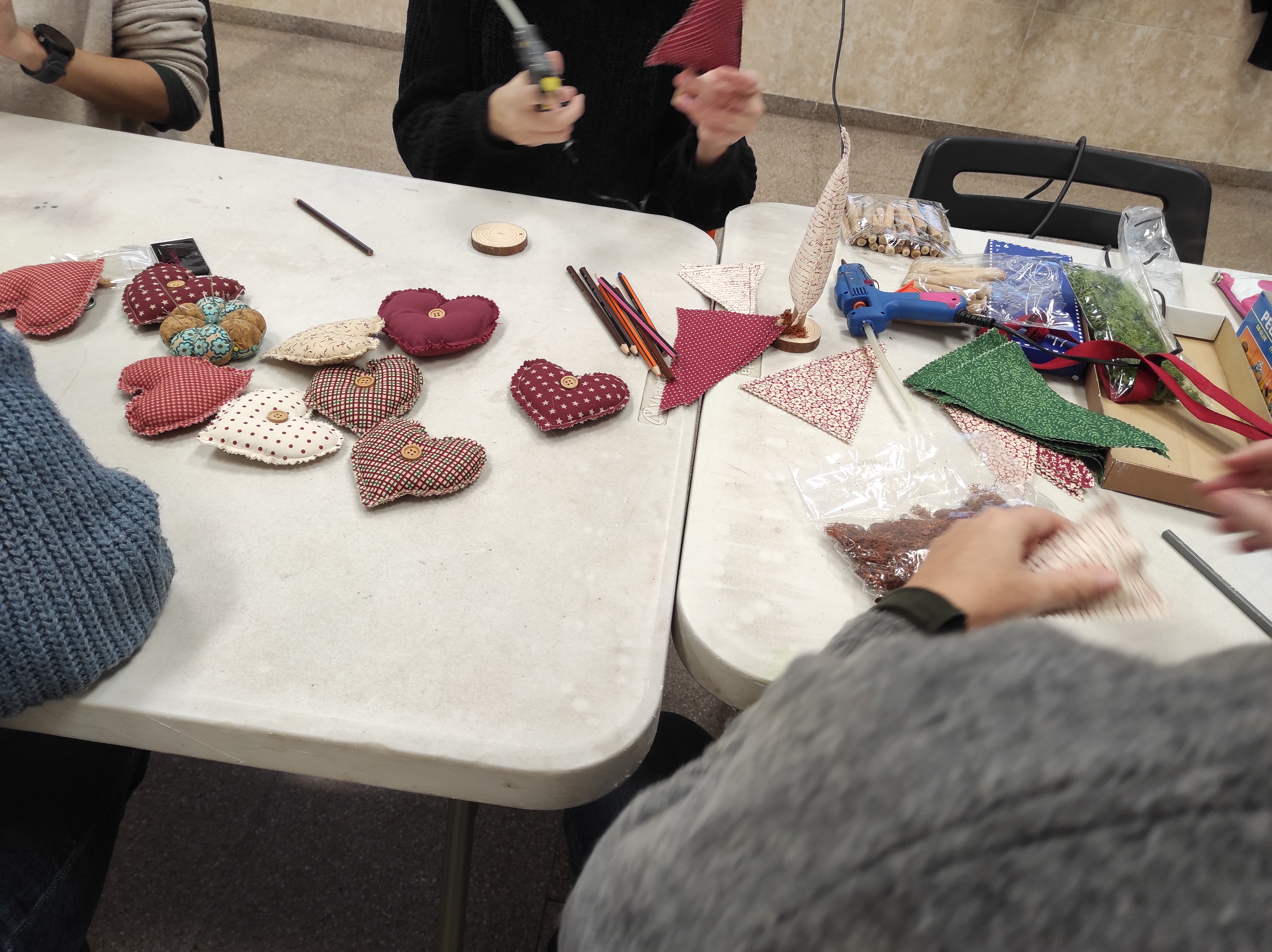 La Loli i la Patri són voluntàries de la Fundació, veïnes del barri i, sobretot, unes artistes! A principis de mes van organitzar-nos un taller de manualitats de Nadal. Vam compartir una molt bona estona amb elles fent decoracions nadalenques i ornaments per la casa. Manualitats boniques com els arbres fets amb retalls de tela i divertides com els imants en forma de galetes de gingebre. També vam crear guarniments amb forma de cor per a l'arbre de Nadal.