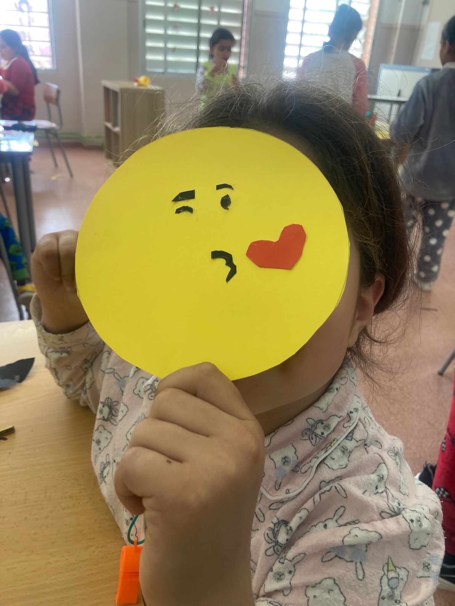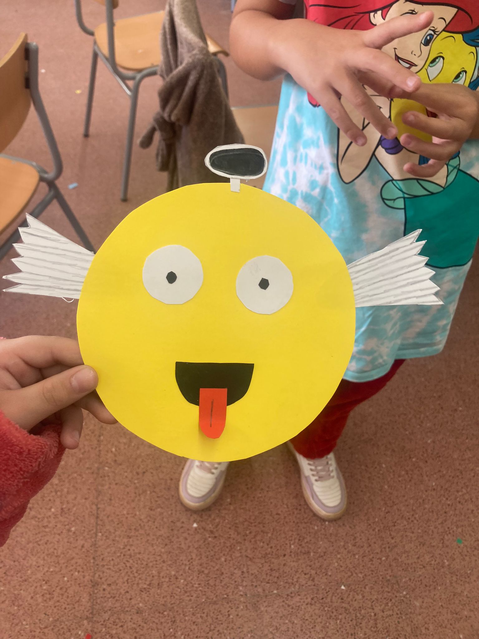 En aquesta ocasió, cada infant va crear el seu emoji amb cartolina i retoladors de colors. Després van estar descrivint l'emoció que representava el seu emoji. Finalment, van penjar totes les seves creacions al suro de l'escola i penjar-los al suro de l'escola.