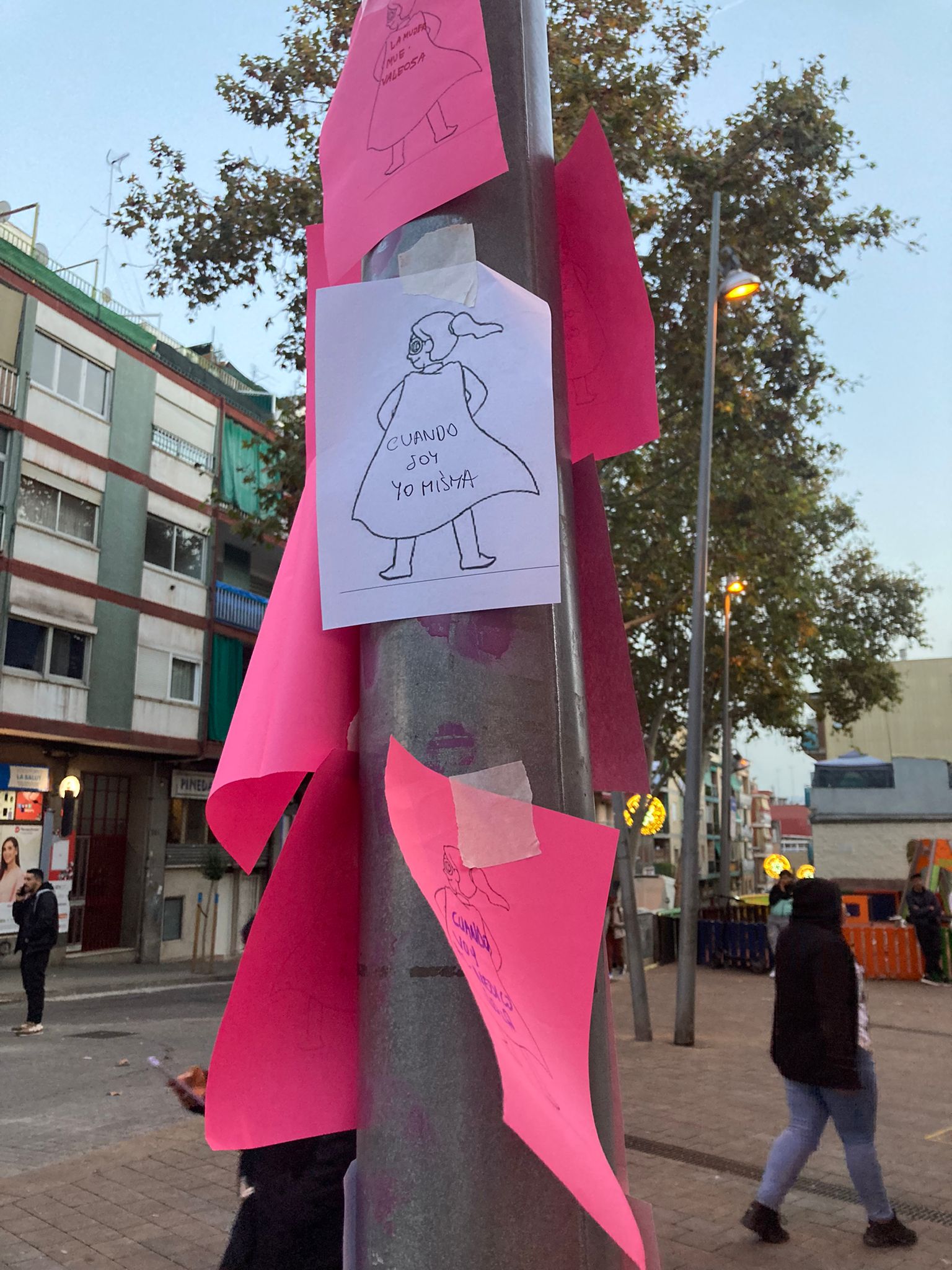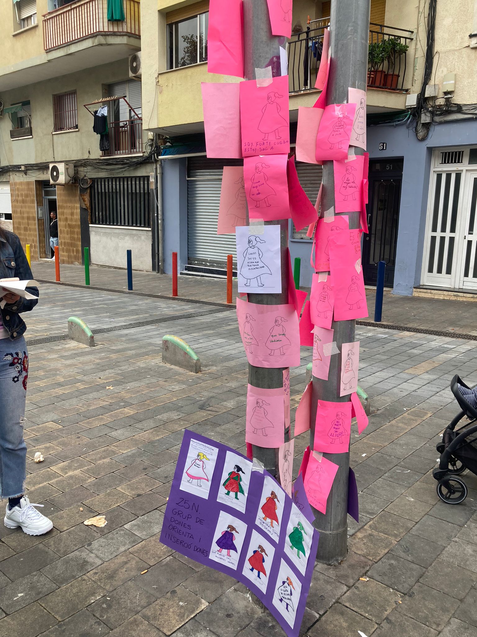 Hem imprès uns dibuixos i a les capes hem escrit diferents missatges empoderadors: “Soc forta quan…” i “Soc forta perquè…”. Després hem enganxat les superheroïnes a la plaça Antonio Machado, perquè tots els veïns i veïnes puguin fixar-se i adonar-se que la lluita contra la violència vers les dones és una responsabilitat compartida per aconseguir un món més igualitari, més equitatiu, on homes i dones compartim espais lliures de violència.
