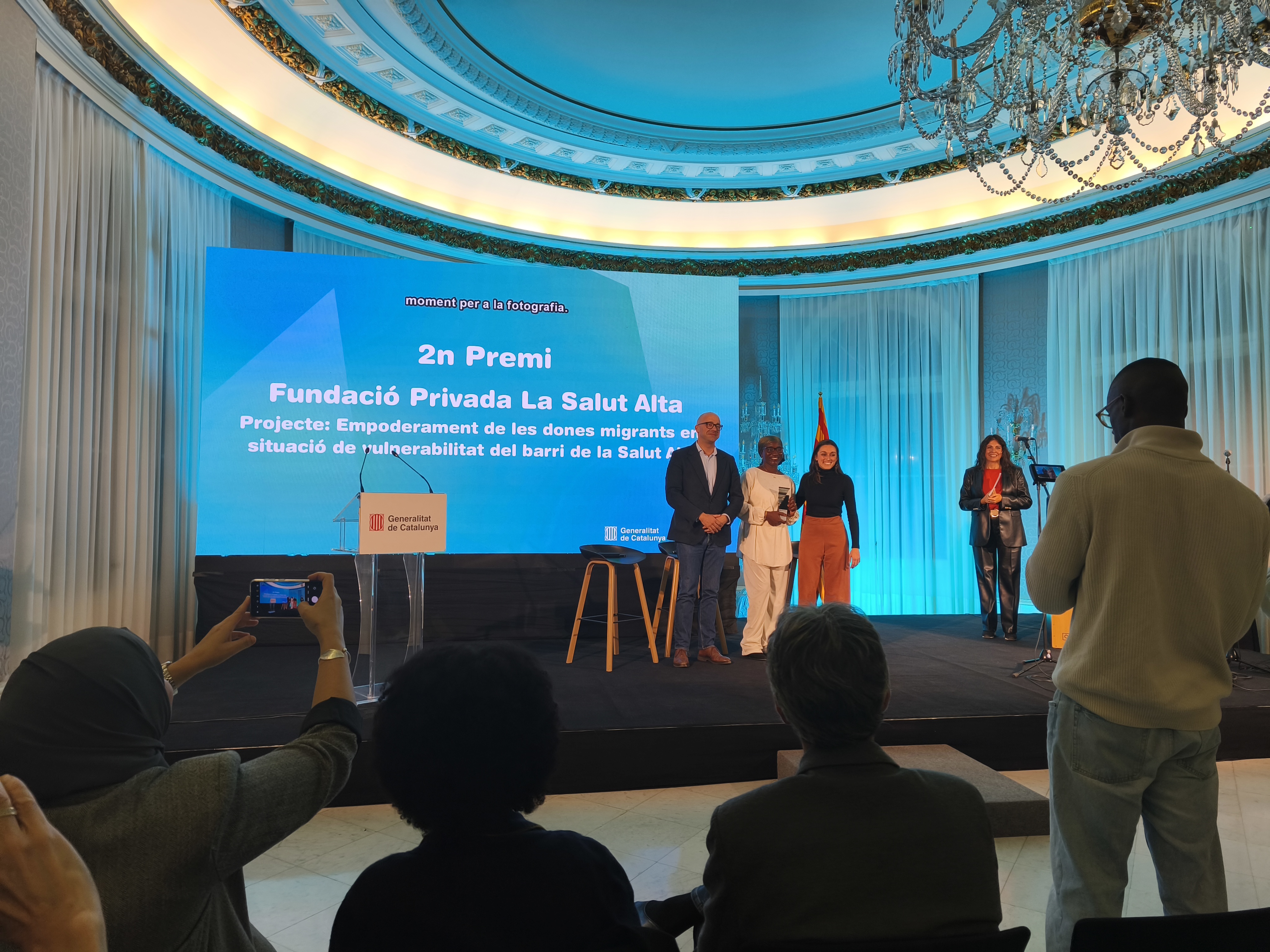 El jurat va concedir el 2n premi al projecte “Empoderament de les dones migrants en situació vulnerable del barri de la Salut Alta”, de la Fundació Privada la Salut Alta. La missió del projecte és, des de fa més de 10 anys, atendre al col·lectiu de dones migrants de quatre barris de Badalona, oferint-los formació i acompanyament i convidant-les a participar i relacionar-se entre elles i amb l’entorn. El voluntariat té un pes fonamental en el projecte, sobretot en l’alfabetització i l’aprenentatge de llengües, i està format per dones de col·lectius vulnerables: beneficiàries del projecte i veïnes dels barris.