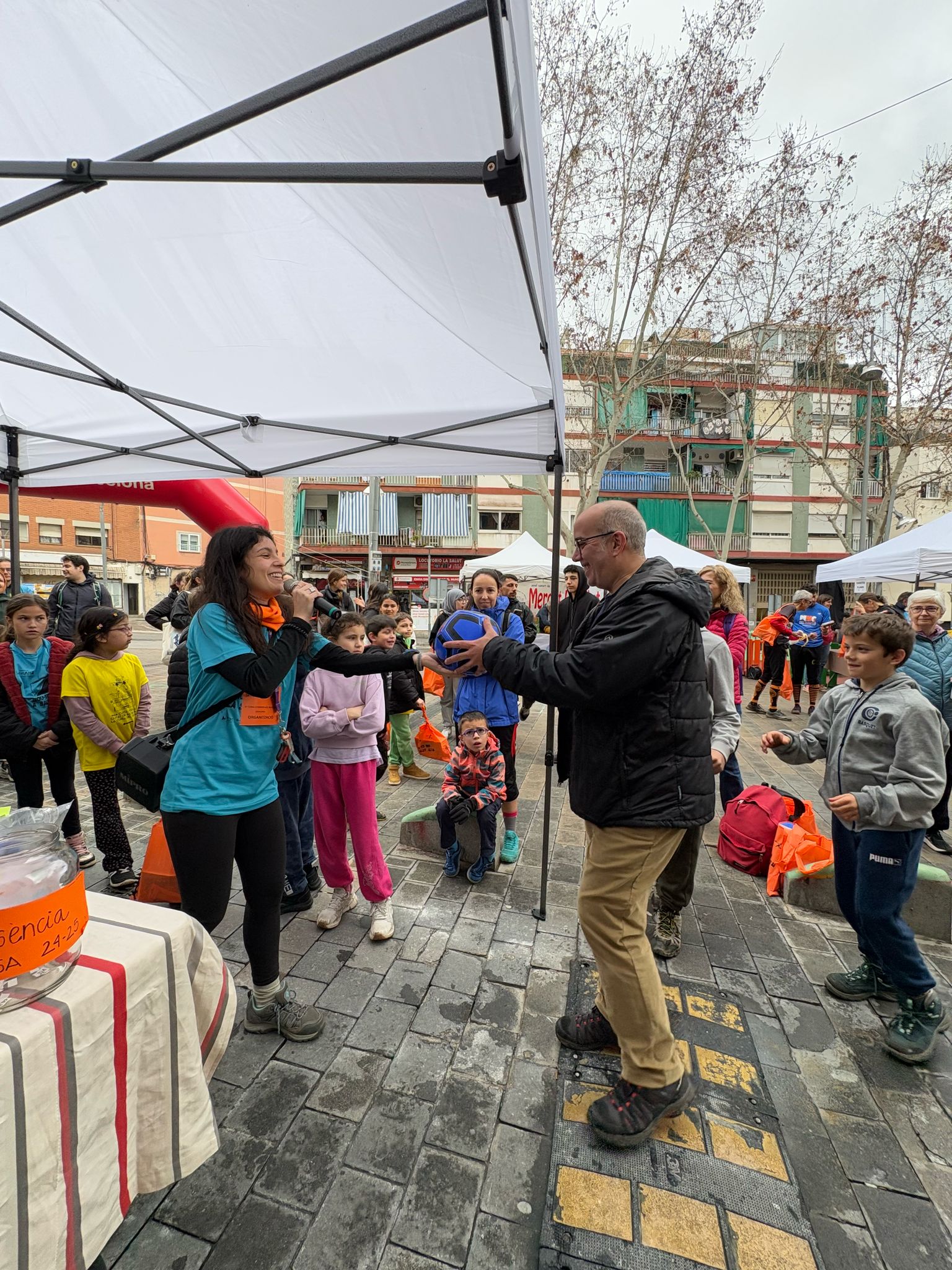 Quan els corredors i corredores arribaven a la plaça, descarregaven la informació del xip i passaven pel punt d'avituallament. Amb aquesta informació vam entregar premis als primers a arribar de cada circuit, obsequis que empreses han cedit a l'entitat per a col·laborar en l'esdeveniment. Totes les persones inscrites van participar d'un sorteig de productes que ens han donat diferents establiments locals com Xurreria Rodríguez, Paco Moreno, GramolaLab o el Mercat Municipal de La Salut. També hi col·laboren, entre d'altres, l'Ajuntament de Badalona, Direxis, Beter, Bonpreu i Esclat, el grup d'esdeveniments MPC, l'espai sensorial SENSAS o la revista de llibres Librújula.