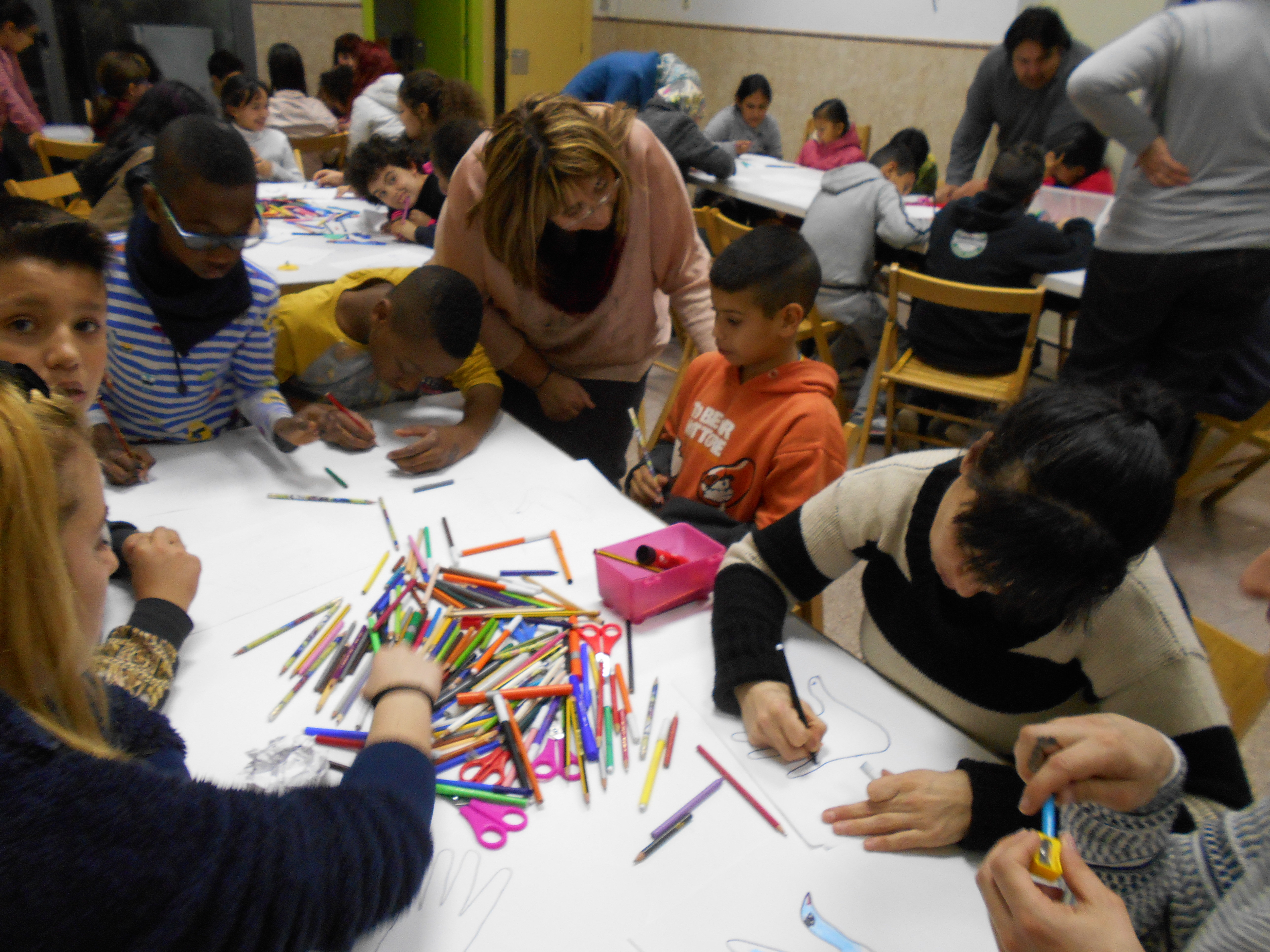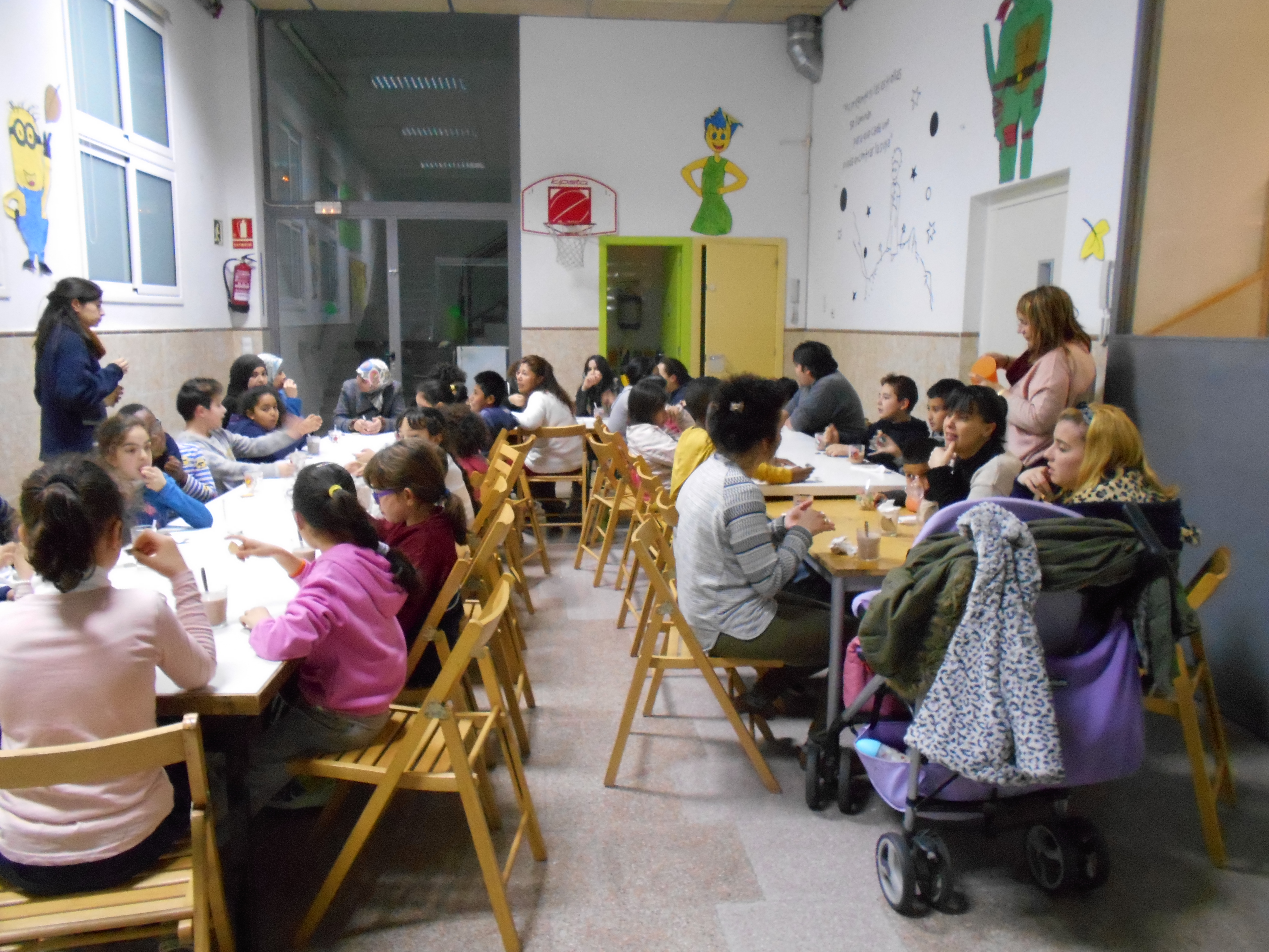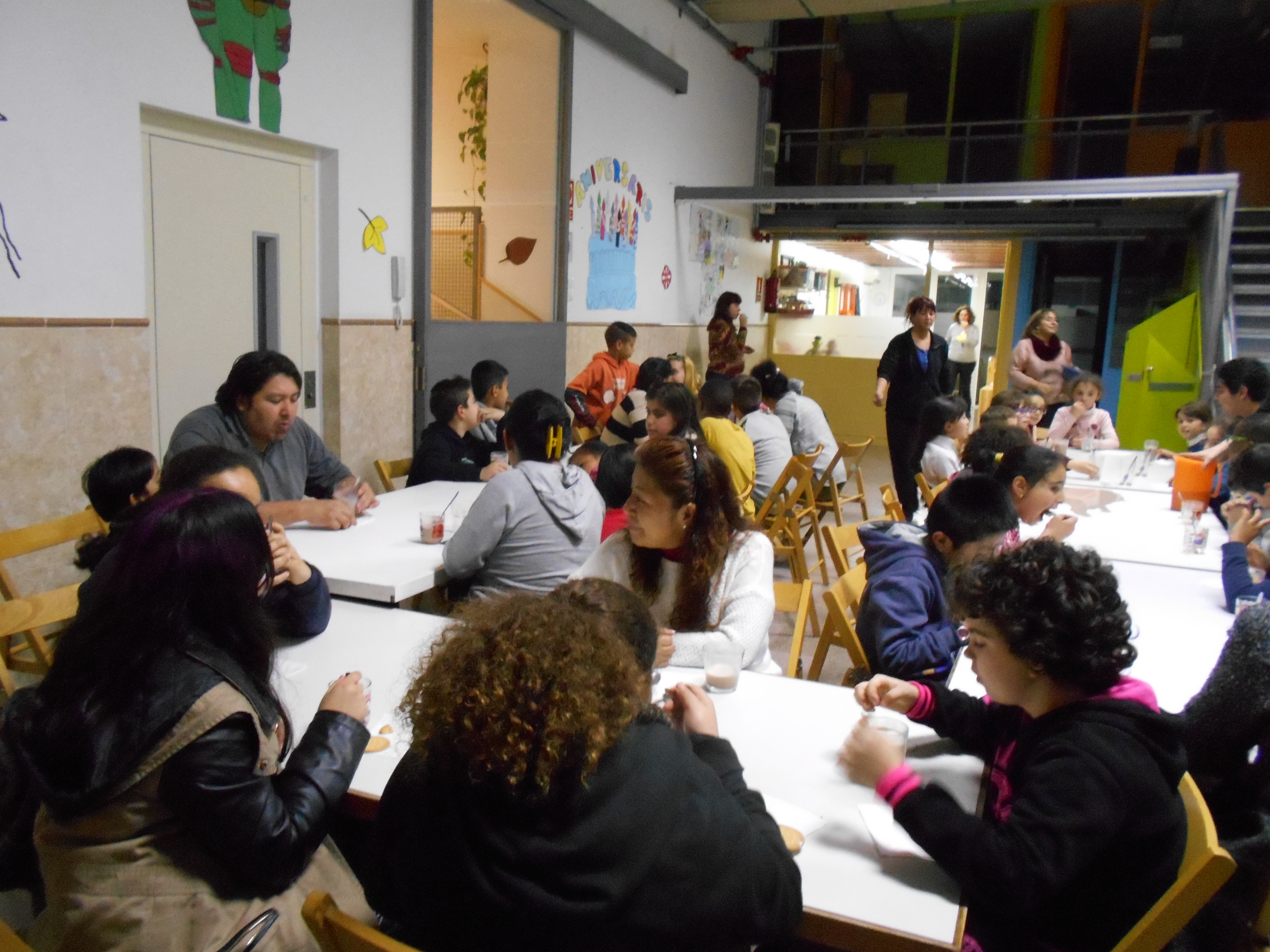 Benjamin Franklin lo sabía bien cuando expresó que “O caminamos todos juntos hacia la paz, o nunca la encontraremos”. Así que nuestra merienda fue conjunta, madres, padres, hermanos, niños y niñas, voluntarias y educadoras nos sentamos juntos para disfrutar de un chocolate caliente con galletas. ¡Una merienda energética para toda una tarde de taller!