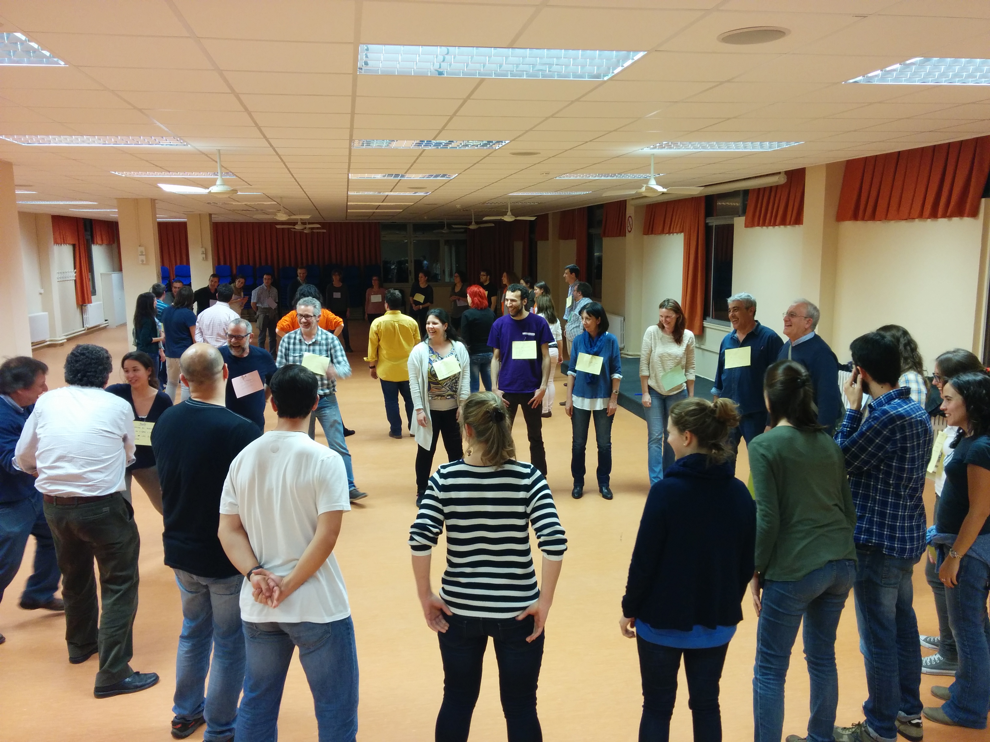 El jueves por la noche ya empezamos con fuerza con los juegos que nos prepararon las coordinadoras de Amoverse. ¿Cómo hacer que tantas personas desconocidas se conozcan? El secreto: explicando mentiras sobre uno mismo, tocándole la barriga al de al lado… y asegurando que el encuentro se iniciaba de la manera más alegre!