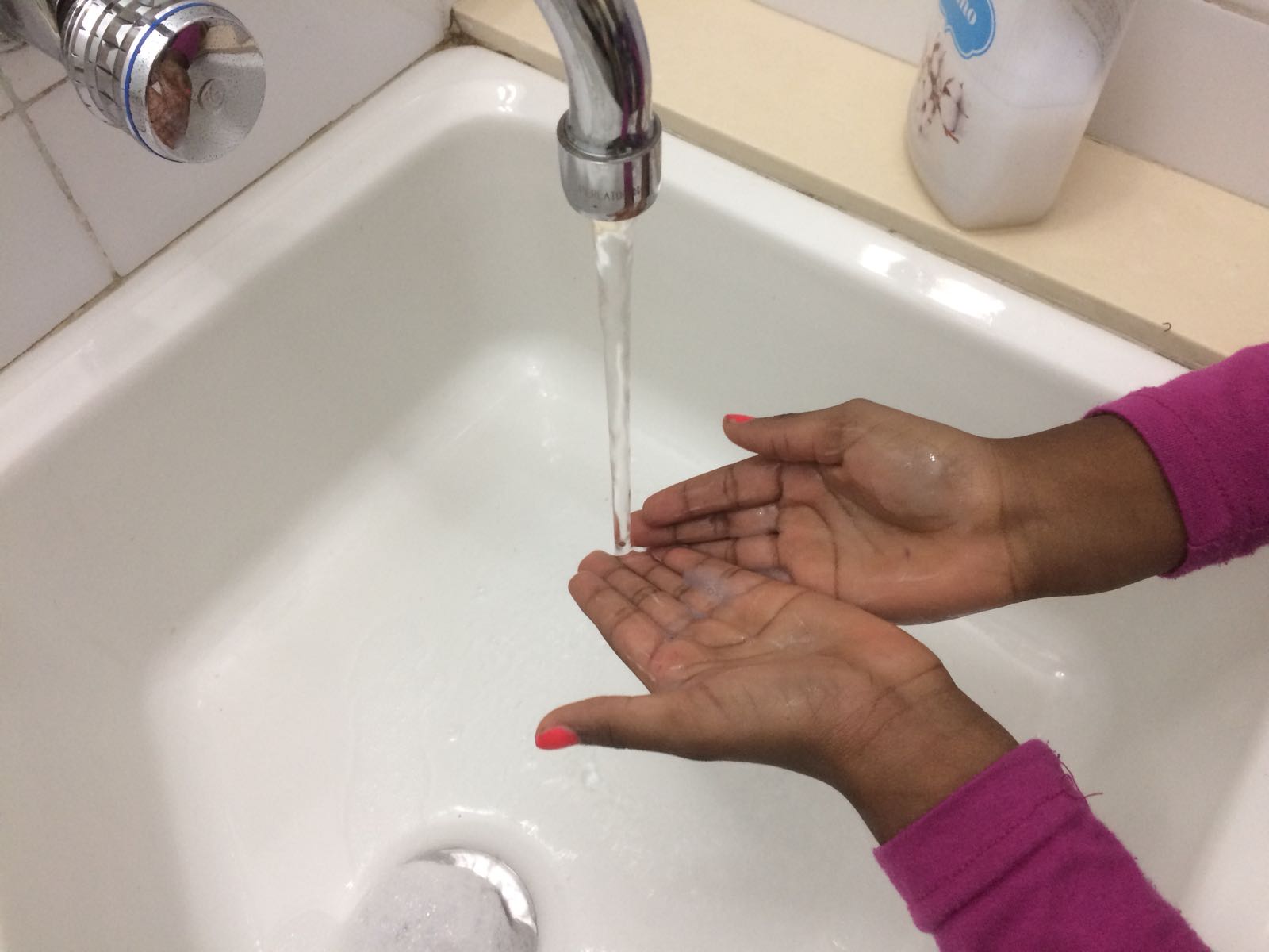 De repente, una tropa de niños empieza su rutina. Se sitúan en fila y, de dos en dos, se van dejando las manos bien limpias: jabón, agua y papel para que estén bien secas.