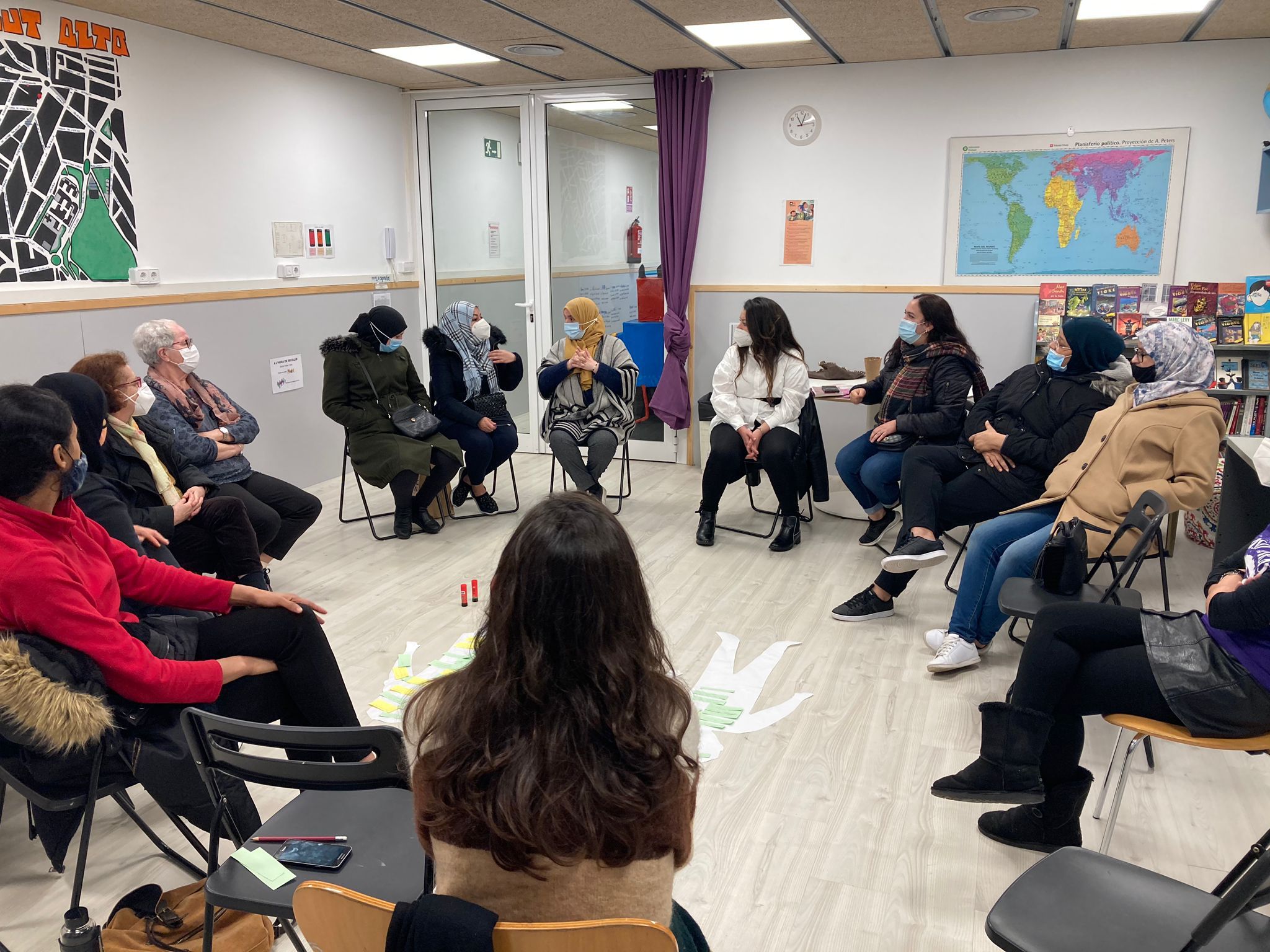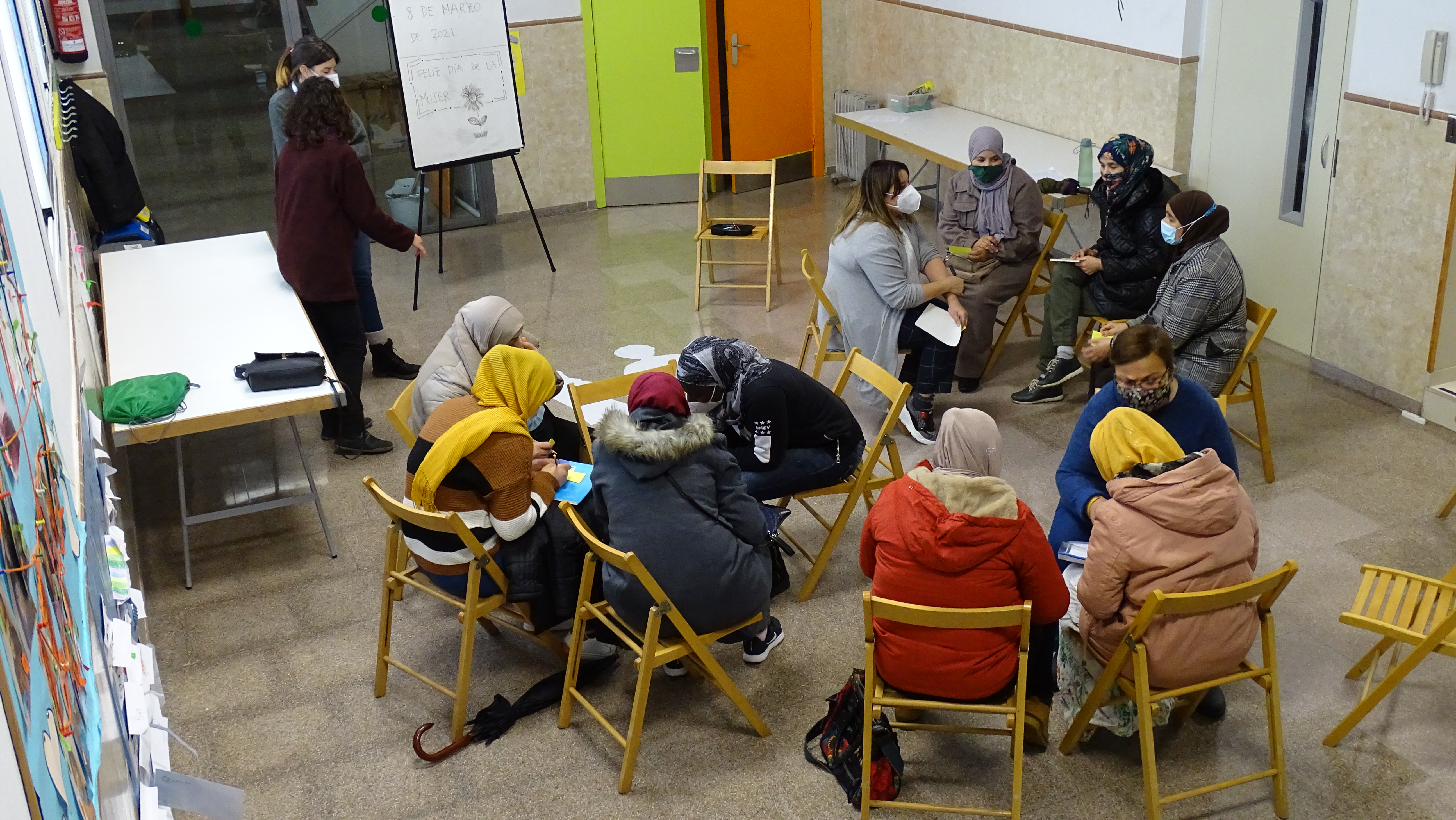 Reflexionando sobre el 8M, como Fundación vimos que nos costaba elegir un mensaje único en el que todas las mujeres, niñas, adolescentes, trabajadoras, voluntarias nos sintiéramos representadas. Cada una de nosotras vivimos un contexto y hemos bebido de una cultura que nos hace ver la misma realidad de una manera muy diferente. Por eso, con la voluntad de encontrar un punto común, hace unos días compartimos un espacio de conversación con un grupo de mujeres del barrio para debatir sobre las desigualdades de género de nuestro entorno más cercano.