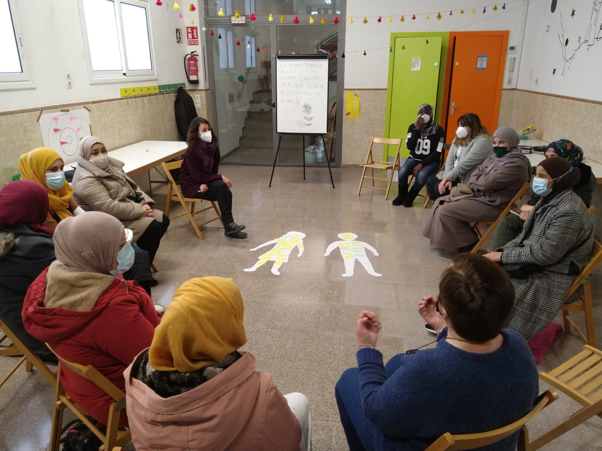 ¡Qué momento tan interesante y rico de opiniones! Salieron ideas como que "la mujer es más fuerte que el hombre, porque tiene que trabajar más y no se le reconoce", que no podemos aceptar "que el hombre nos ayude en las tareas domésticas y que encima tengamos estar agradecidas" sino que debe ser una acción de corresponsabilidad. Y la frase que muchas compartían: "¡Al menos podría estar los fines de semana con sus hijas e hijos!".