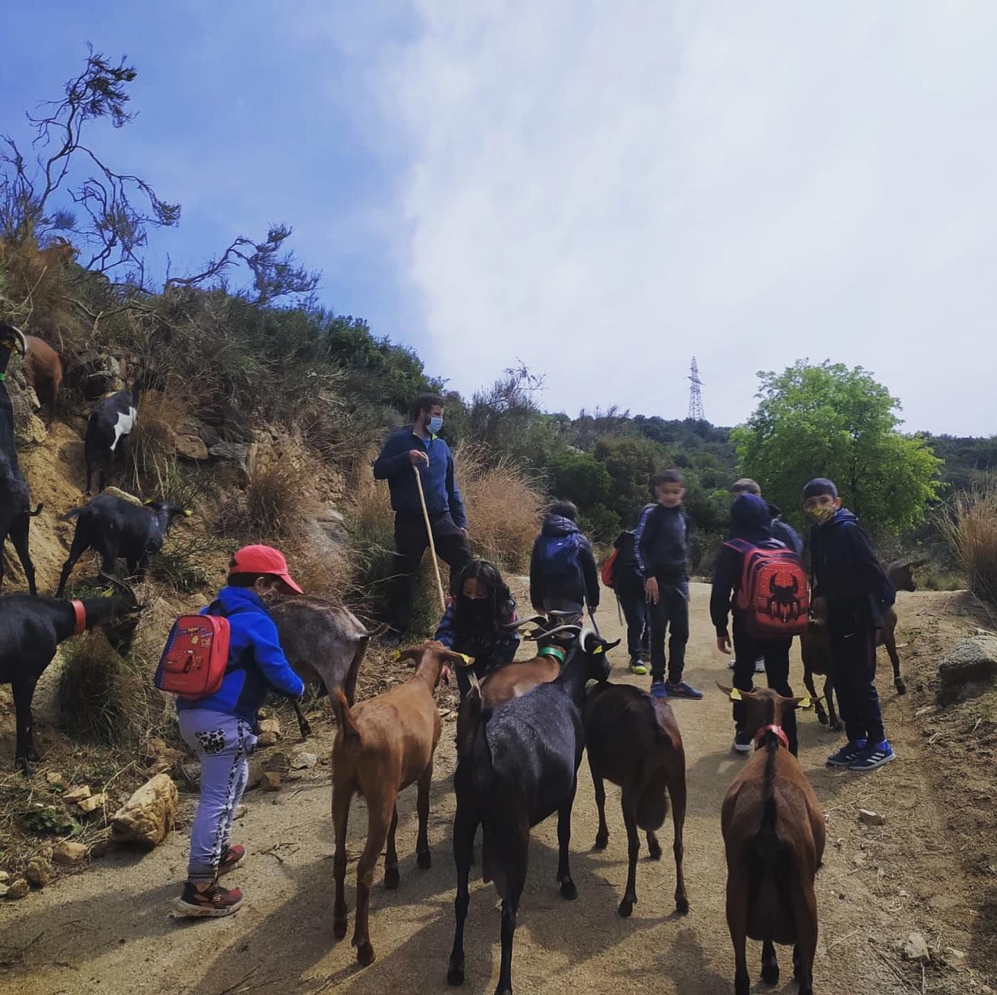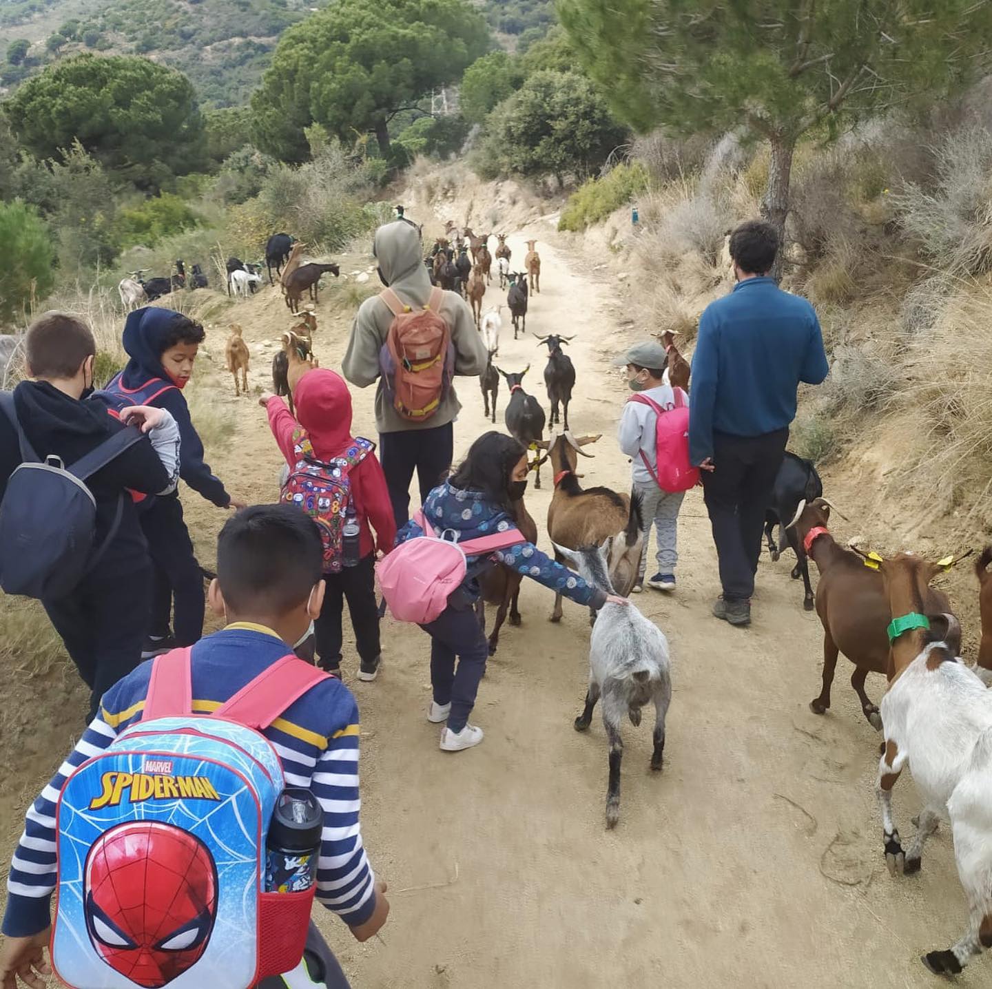 Los últimos sábados del mes de abril, nos encontramos niños y educadoras de ApreniJoc para disfrutar de una mañana en la Serralada de la Marina. La B24 nos enfiló hacia Can Ruti donde, a pie de montaña y después de un buen desayuno, nos esperaban más de 130 cabras.