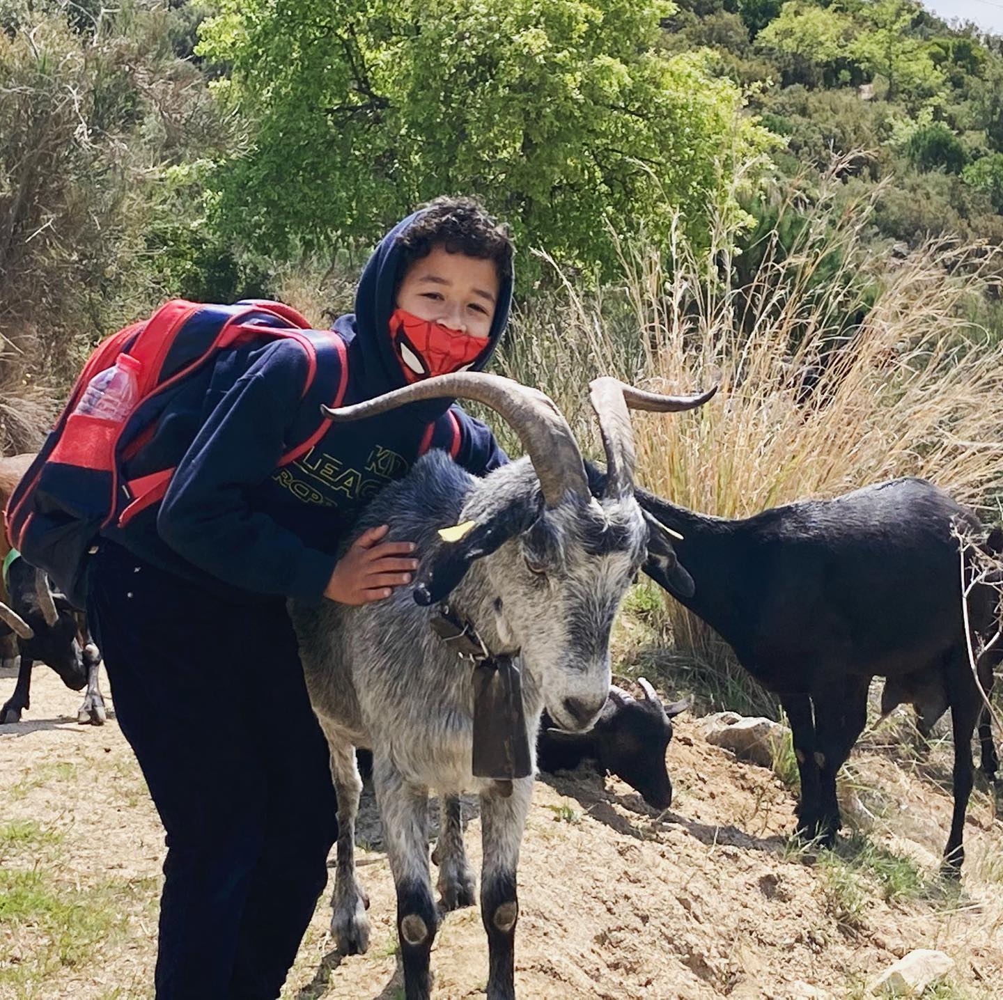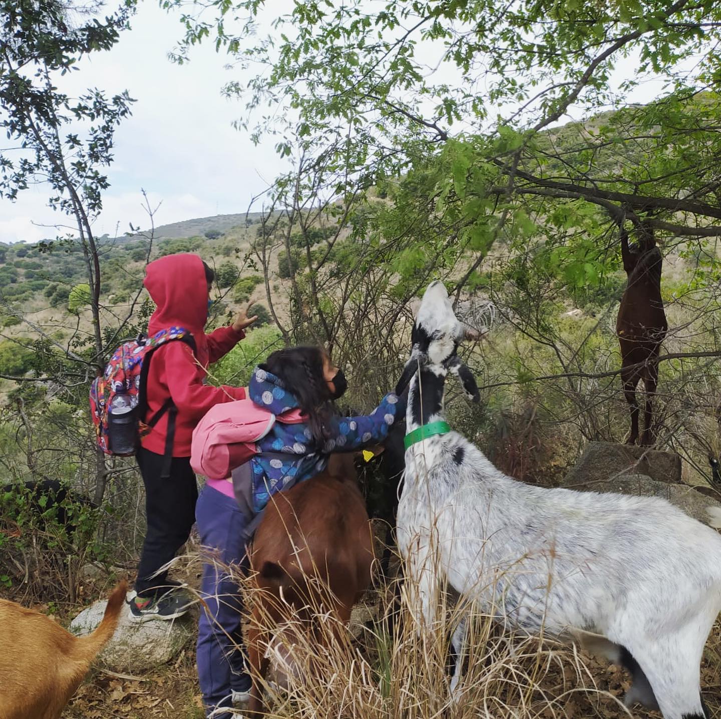 Badacabres es una familia formada por cabras de raza mixta, autóctonas de la Sierra de la Marina, cariñosas, muy acostumbradas a los humanos, tranquilas, inteligentes, caprichosas, curiosas y con muchas ganas de compartir un trozo de camino con todo el mundo quien quiera. Ellas vinieron acompañadas de estos tres pastores, con quien aprendimos mucho sobre las cabras: su carácter, su alimentación, su día a día, y cómo de importantes son para cuidar del medio ambiente, ya que a medida que pastan, limpian la tierra. Nos ganamos la confianza de la jefa, la Bubú, y el cariño y el aprecio de la Blanquita, la Emilia, la Negrita, entre otros.